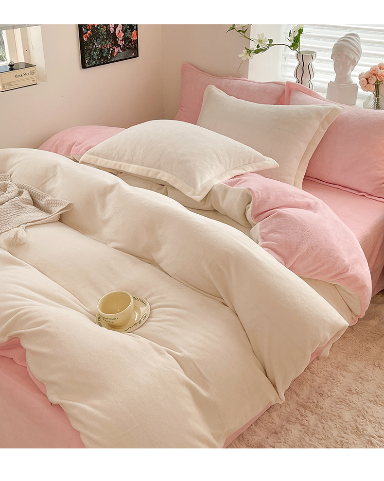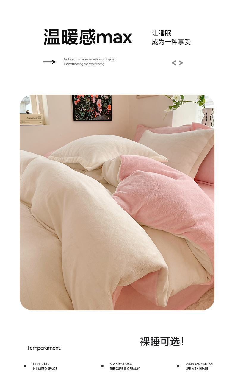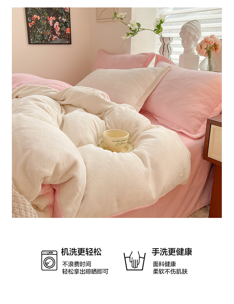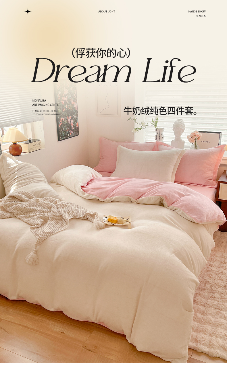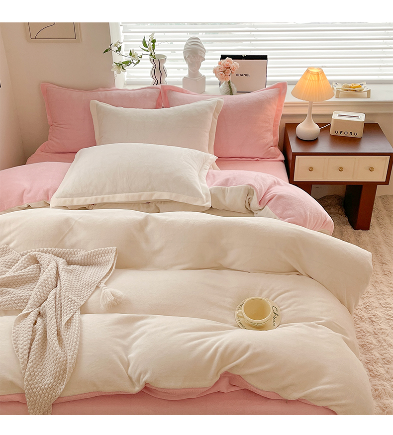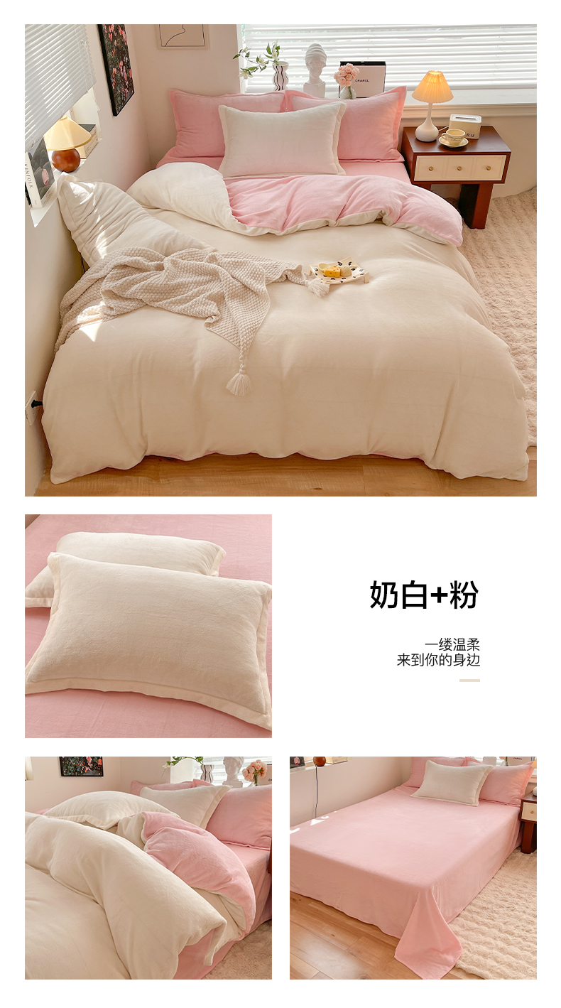 当前位置: 91家纺网 > 商品网购 > 床品套件 > 四件套 > 牛奶绒四件套 > 逸尚阁 2024新款高克重纯色牛奶绒四件套 奶白+粉