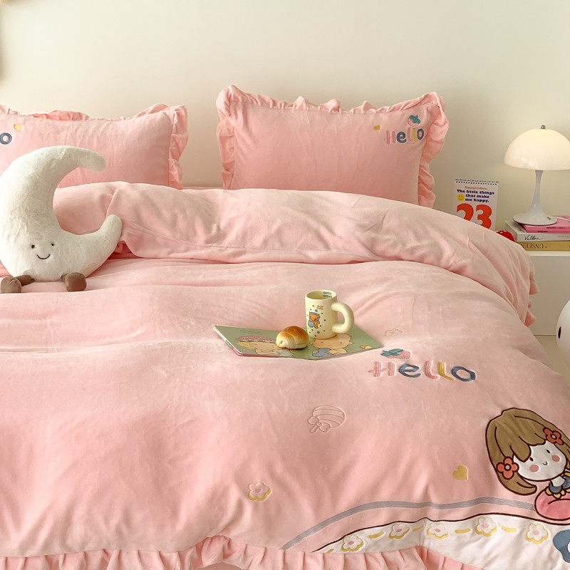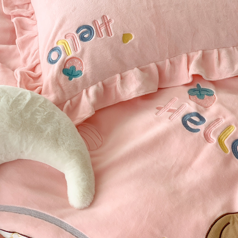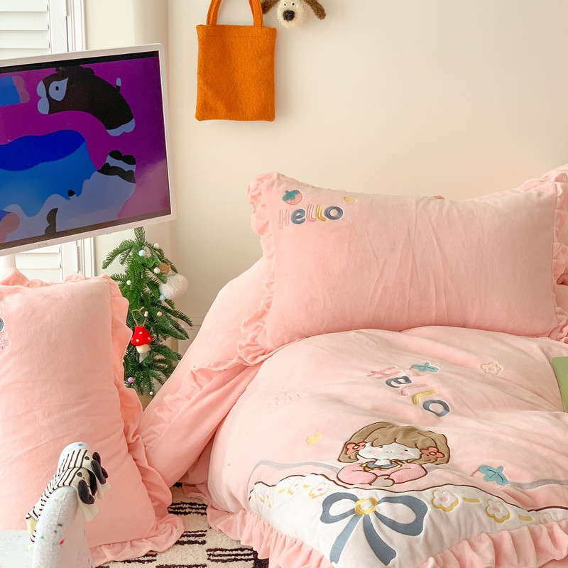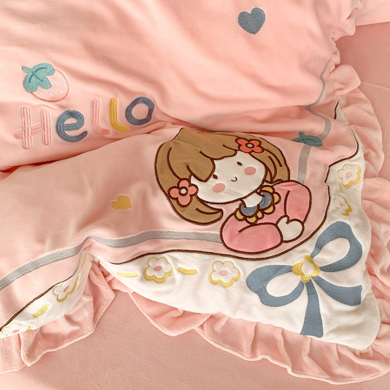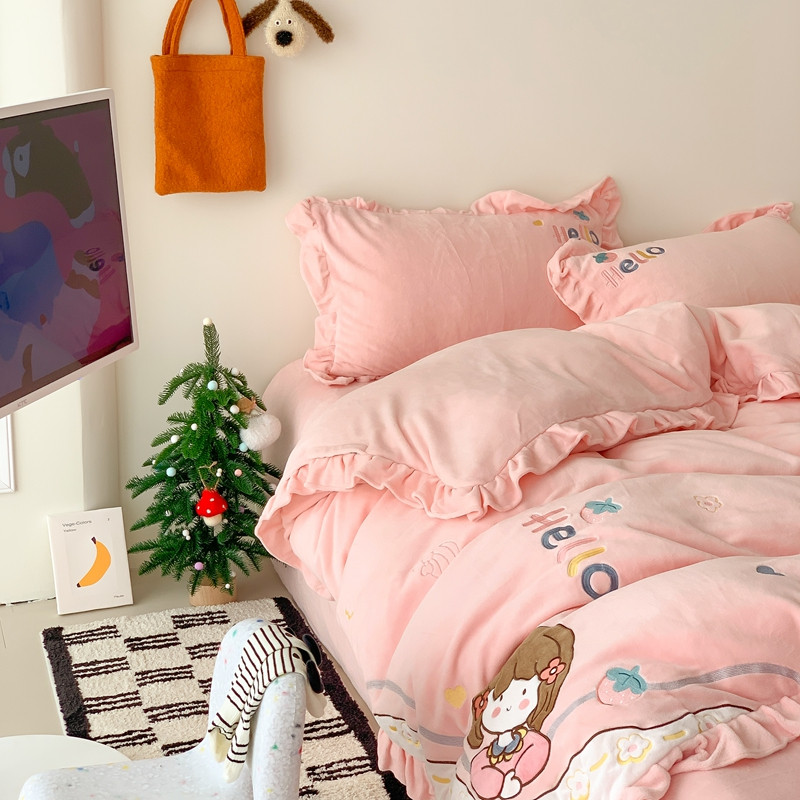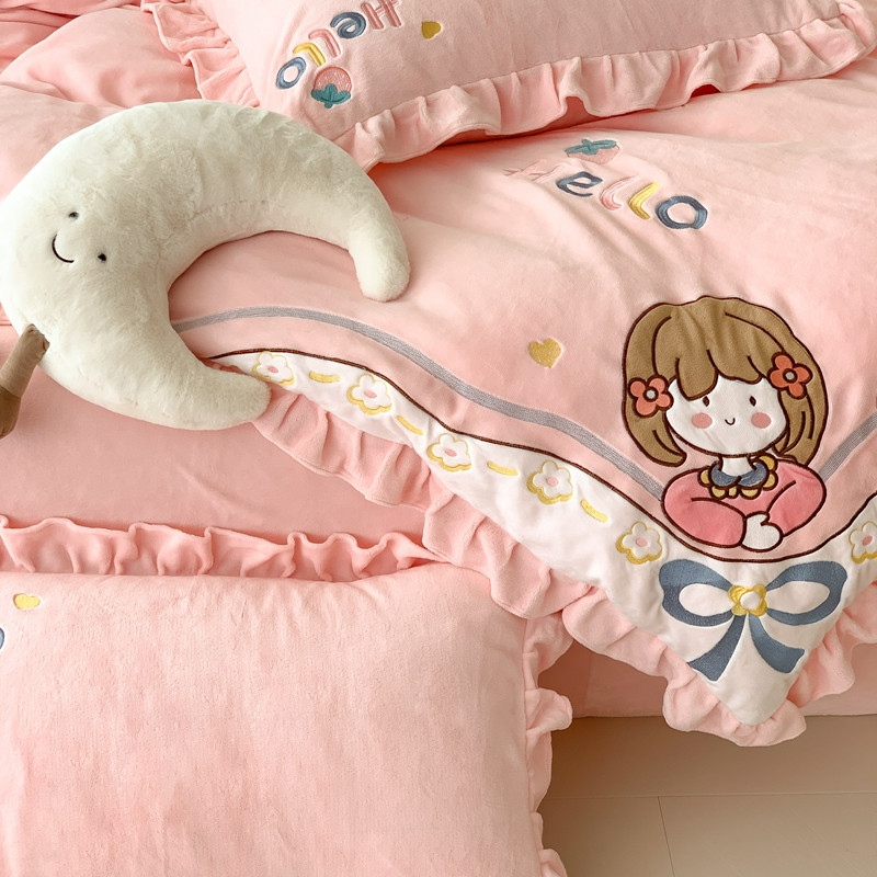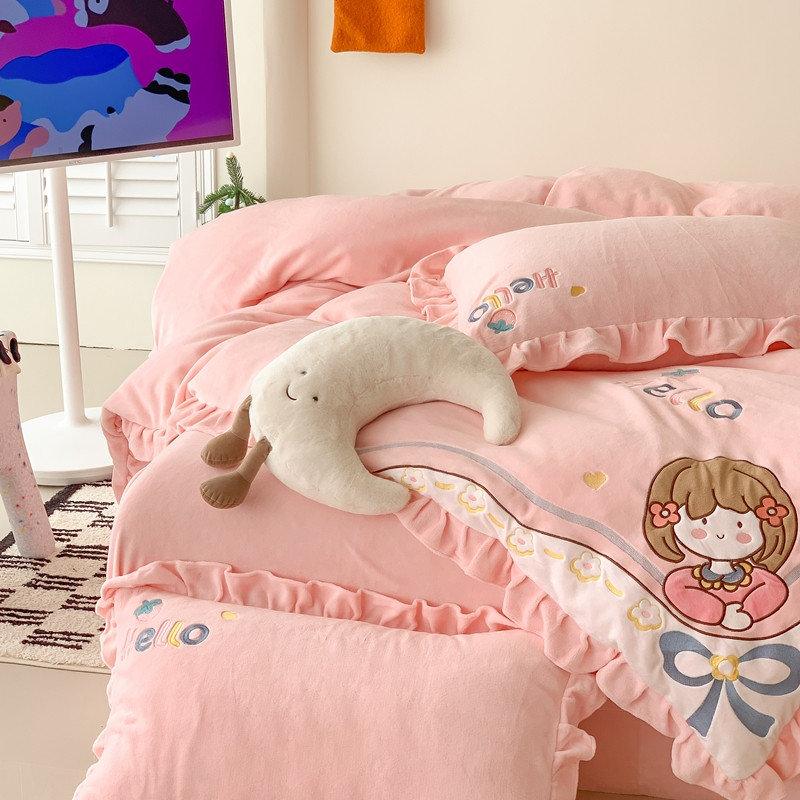 星期八 2023新款牛奶绒贴布绣四件套 hello女孩