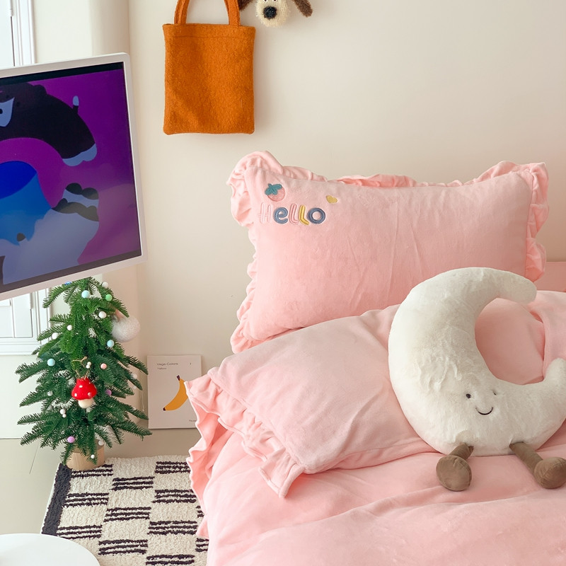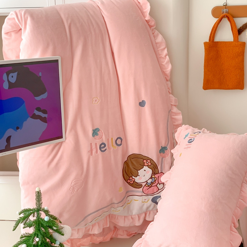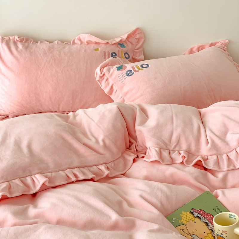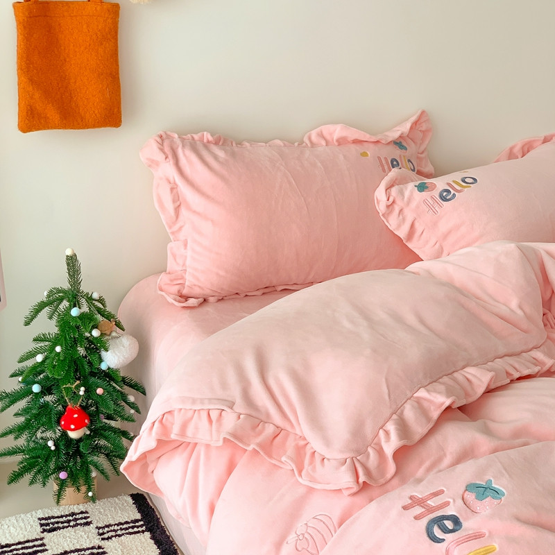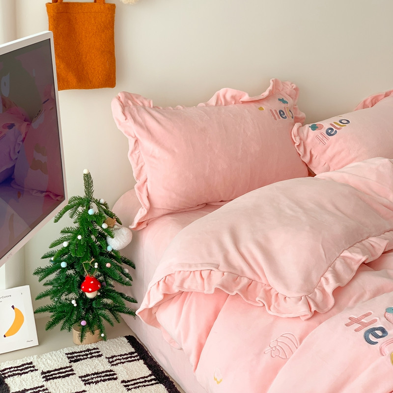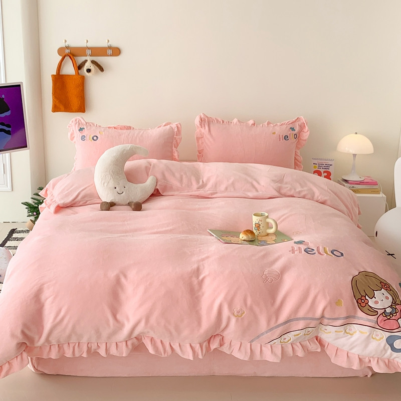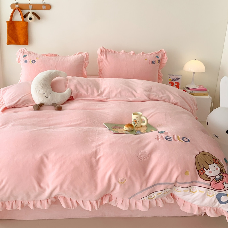 星期八 2023新款牛奶绒贴布绣四件套 hello女孩