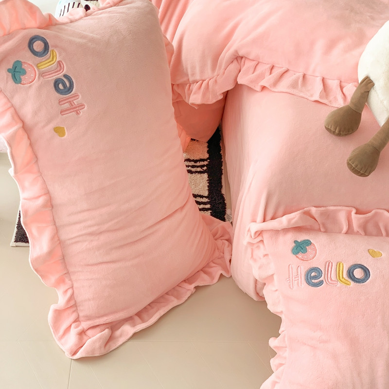 商品名称:星期八 2023新款牛奶绒贴布绣四件套 hello女孩