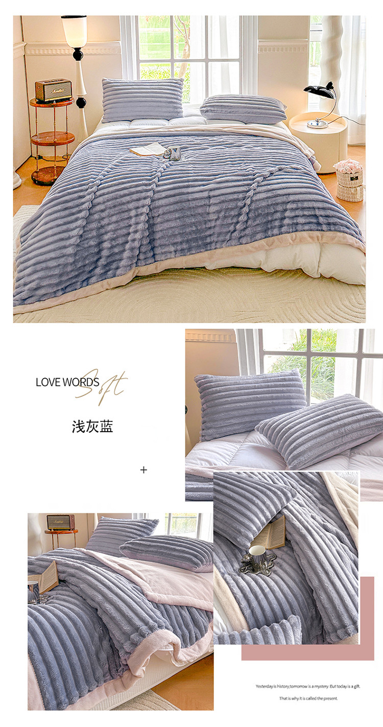 商品名称:网客 2024新款高克重纯色兔毛绒休闲毯 浅灰蓝