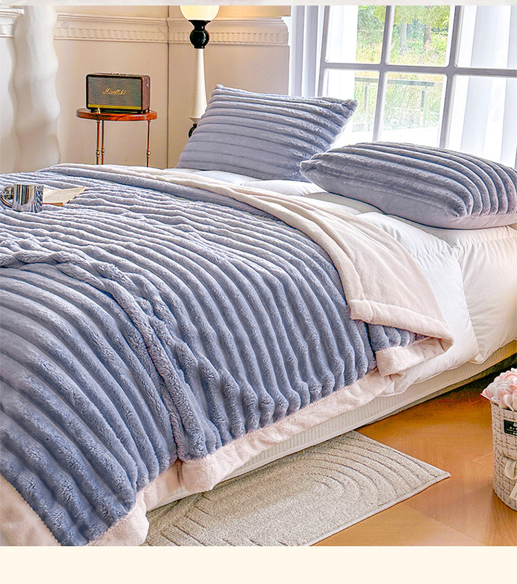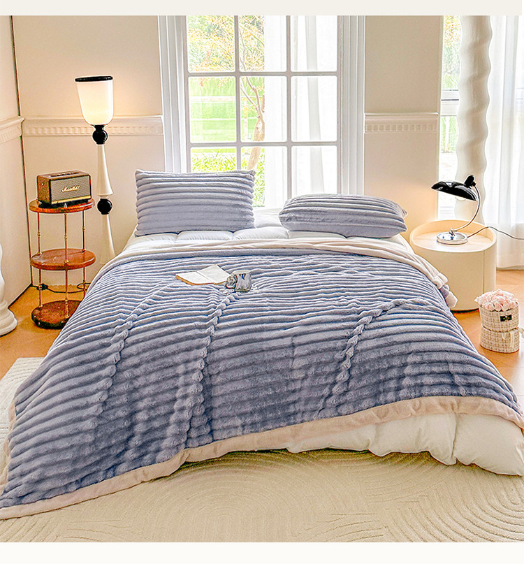 网客 2024新款高克重纯色兔毛绒休闲毯 浅灰蓝