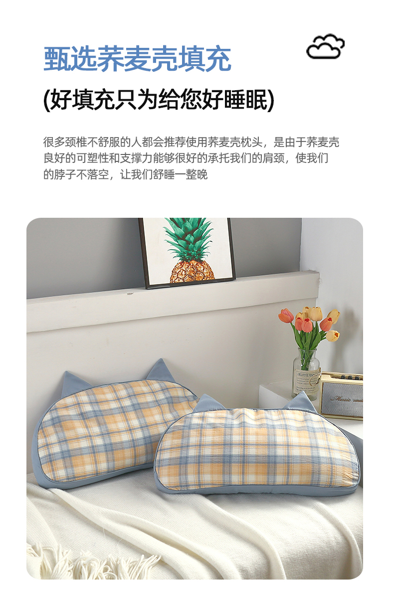 当前位置: 91家纺网 > 商品网购 > 枕头/枕芯/保健枕/颈椎枕 > 普通枕芯 > 明星枕业 2023新款水洗棉格子花草枕猫耳朵荞麦壳枕头 维希格绿