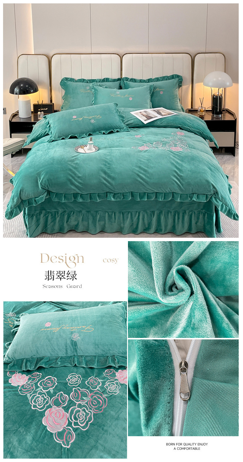 商品名称:金米诺 2024新款婴儿绒韩版床单绣花四件套 翡翠绿