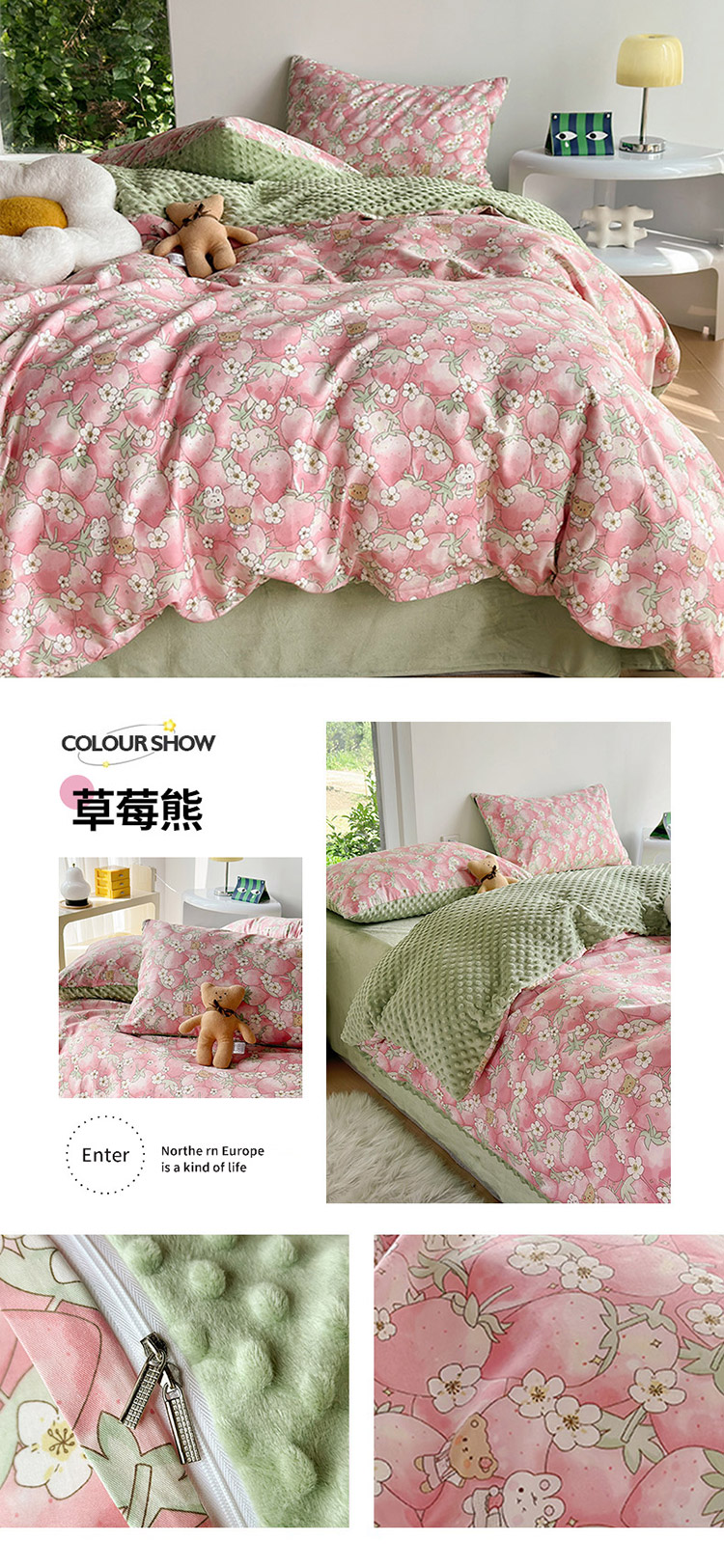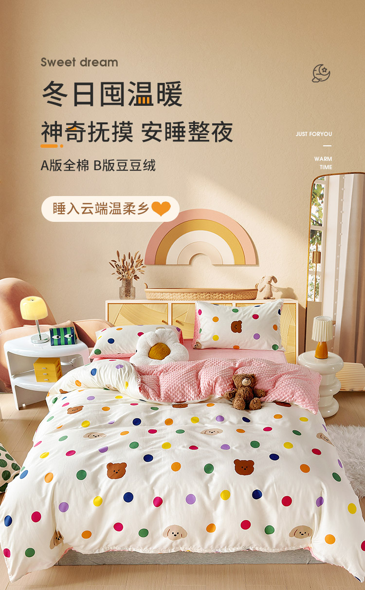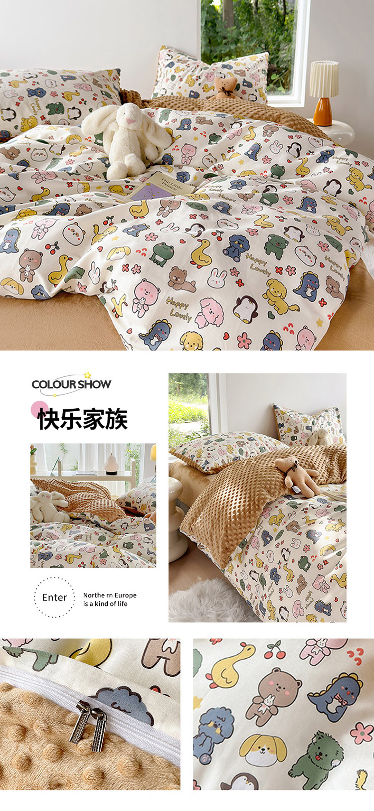 (总)怡家居 2025新款秋冬保暖全棉加绒四件套,爱丽花园,春色,光年,花边兔,蜡笔小新,时光里,小红果-咖,小红果-蓝,小蘑菇,QQ乐园