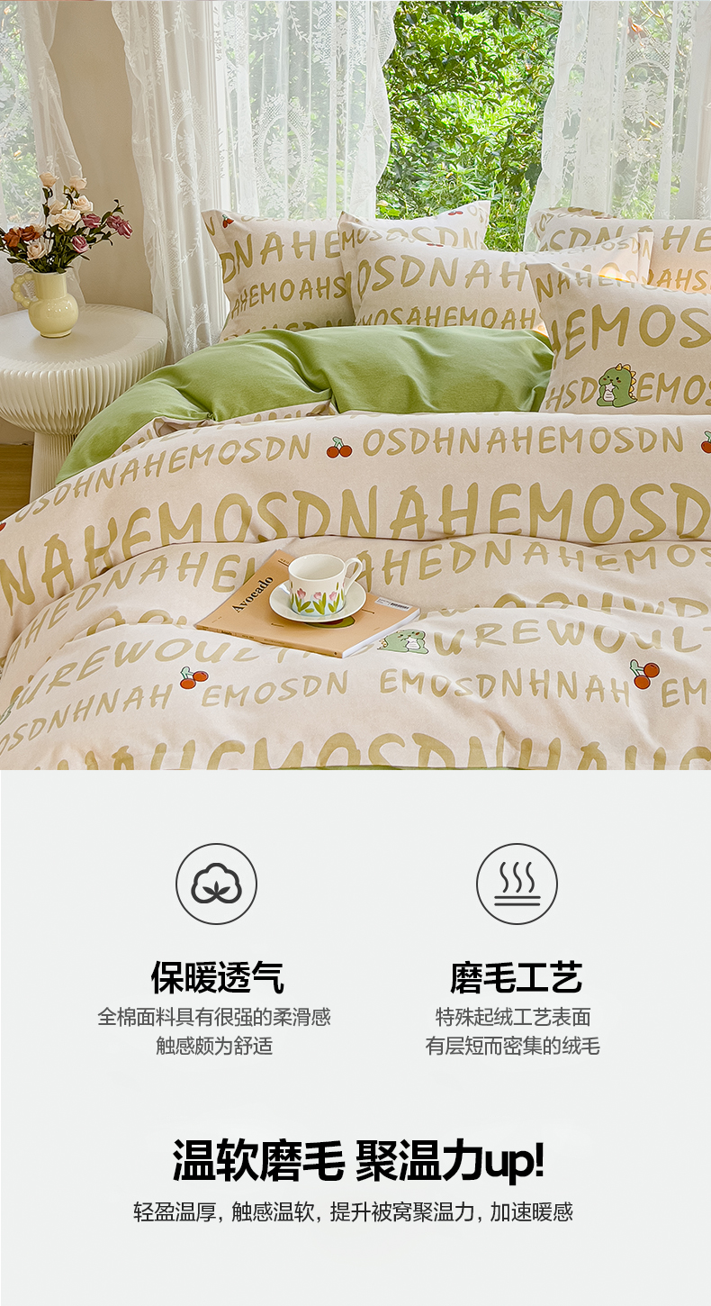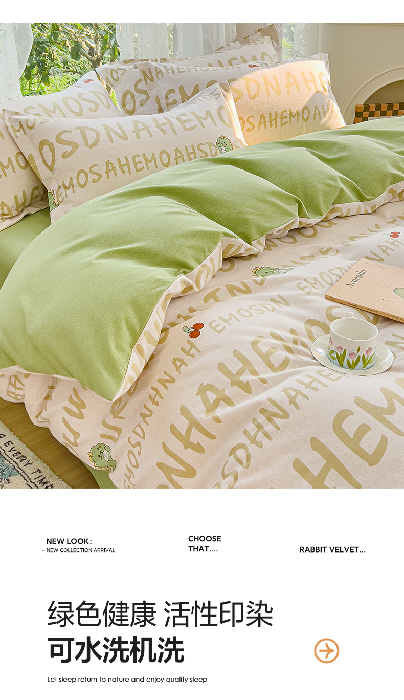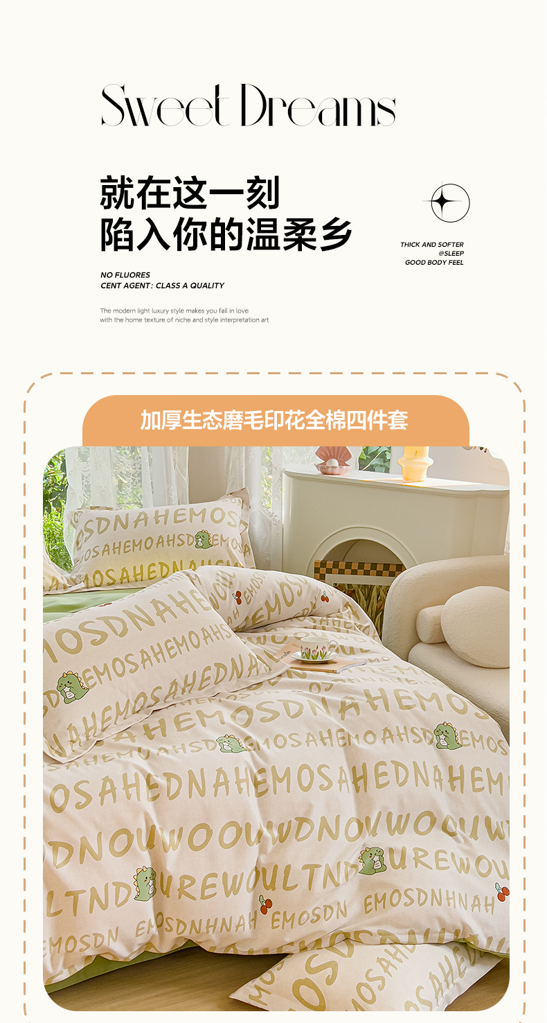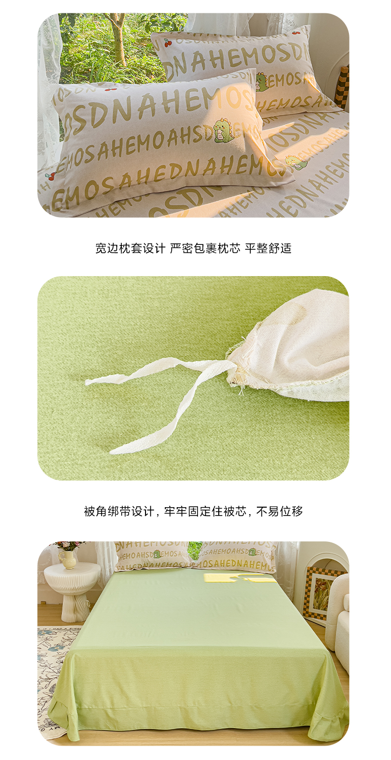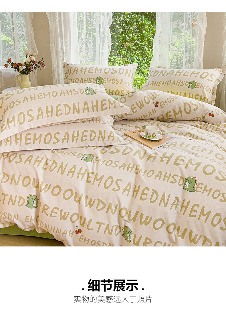 当前位置: 91家纺网 > 商品网购 > 床品套件 > 四件套 > 全棉普通四件套 > 伊而梦 2023新款小清新全棉磨毛印花四件套系列 可爱恐龙