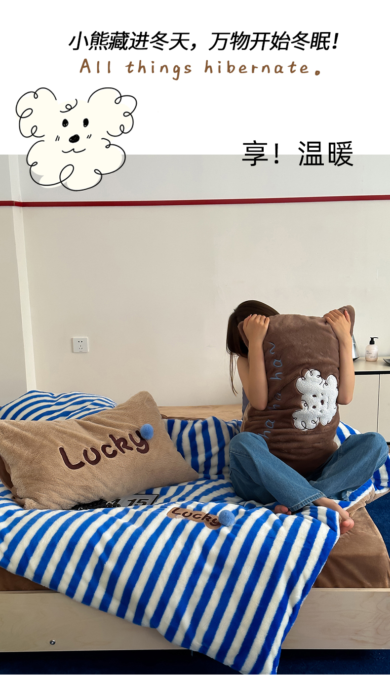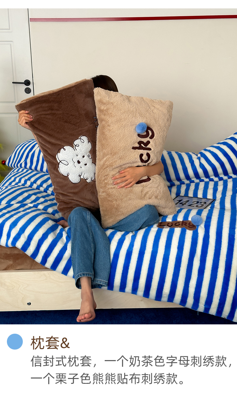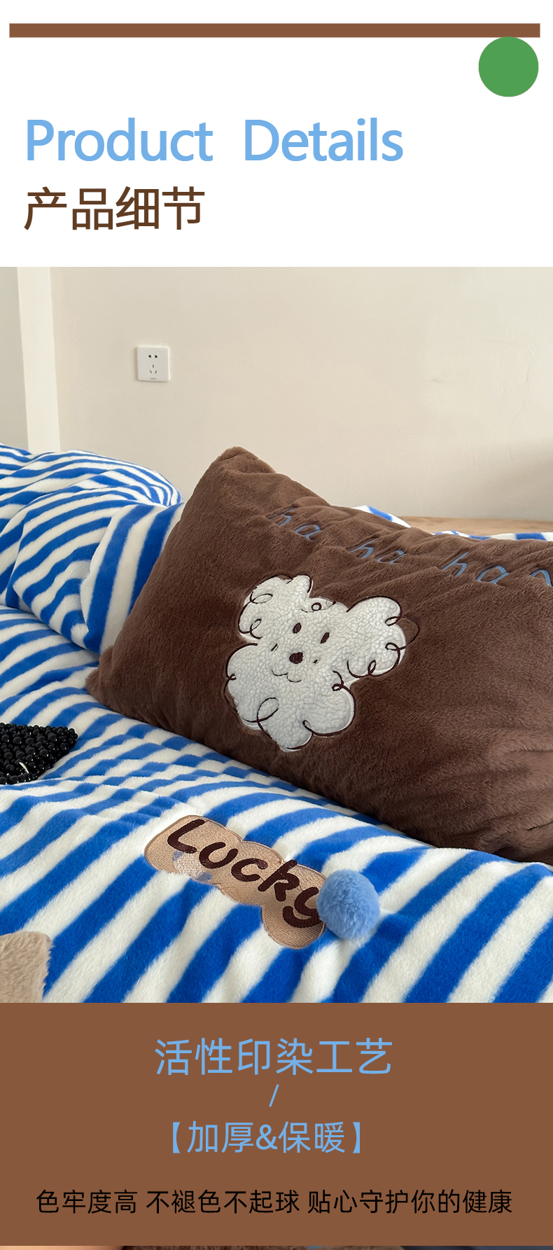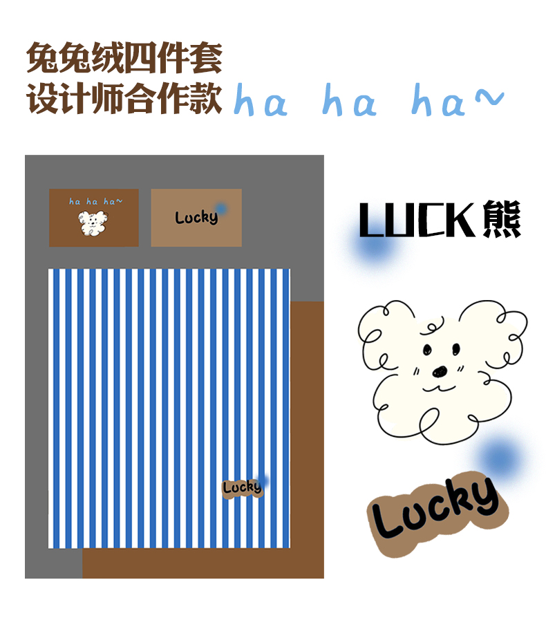 商品名称:(总)桔子家纺 2023新款精致刺绣兔兔绒卡通四件套-LUCK熊