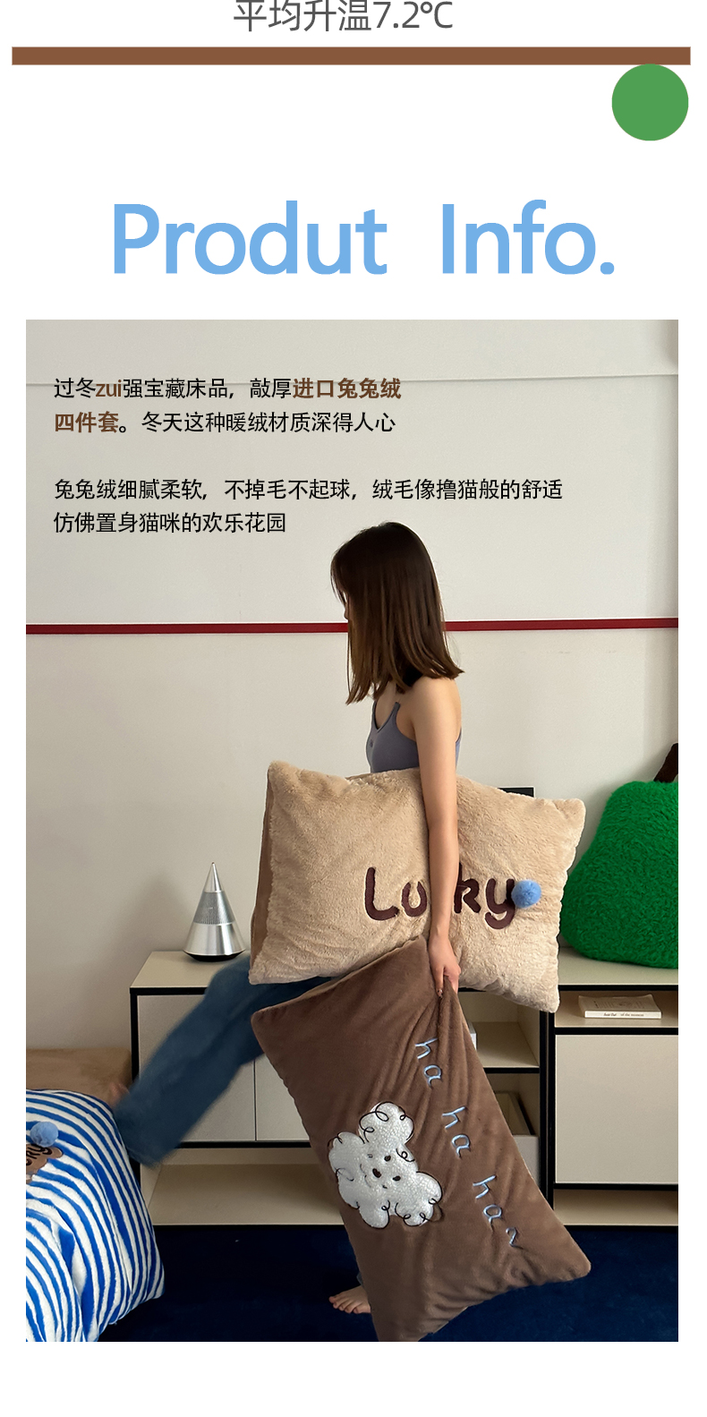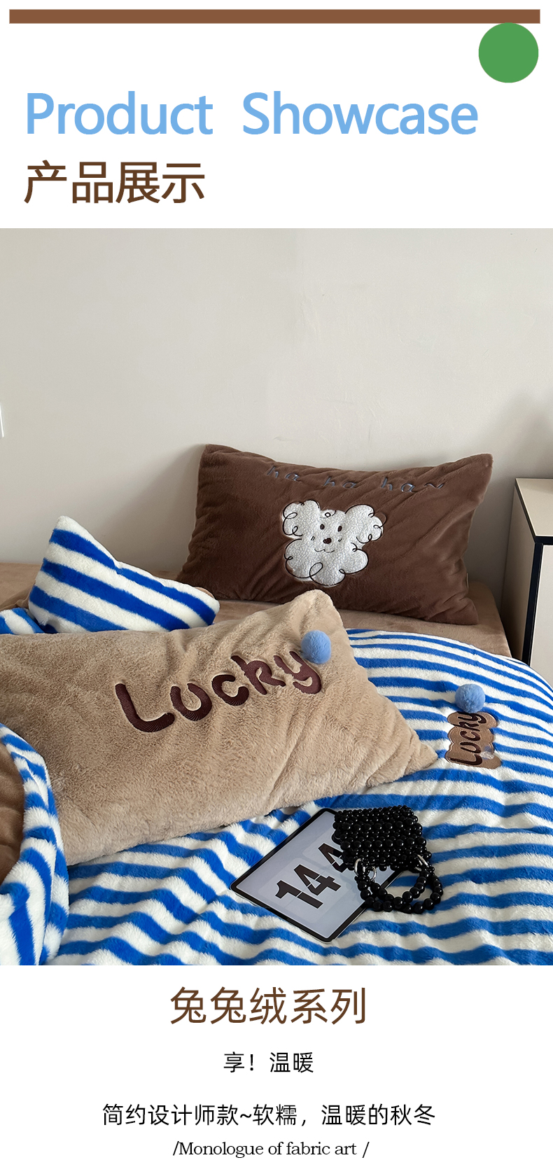 (总)桔子家纺 2025秋冬新款兔兔绒美式复古系列四件套,coco可可(四件套),查理(四件套),吉米(四件套)