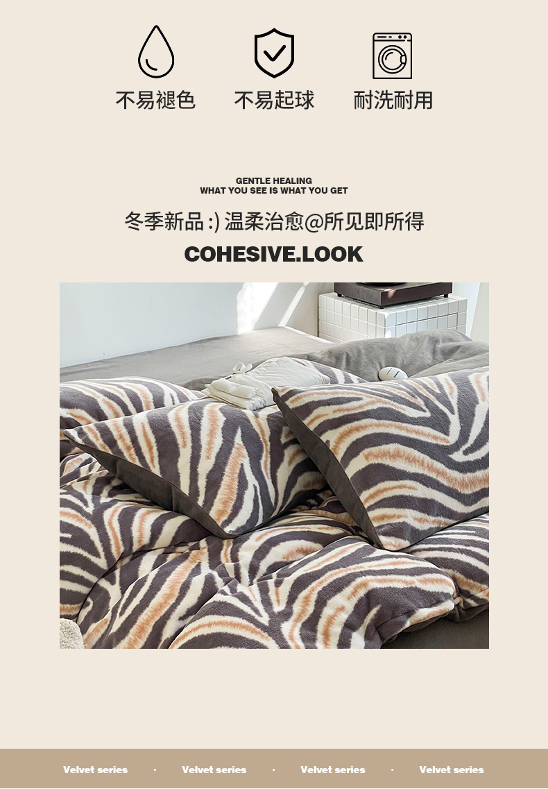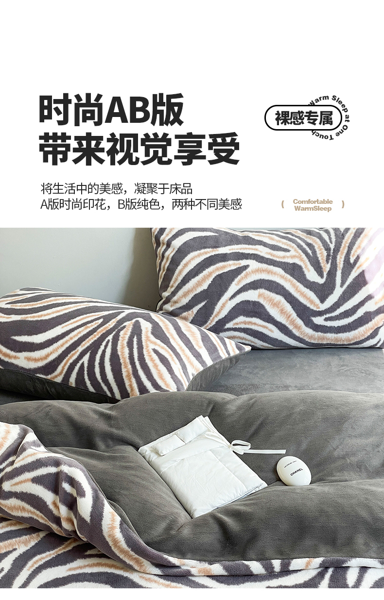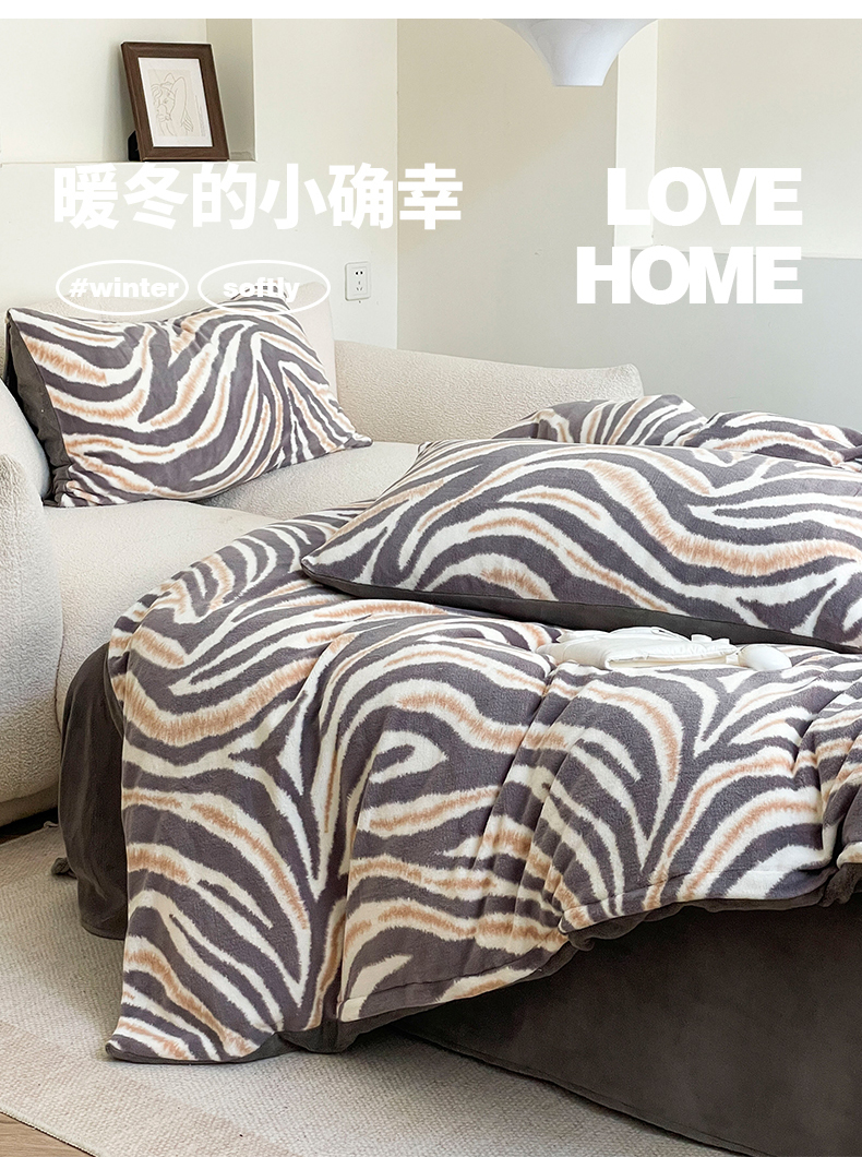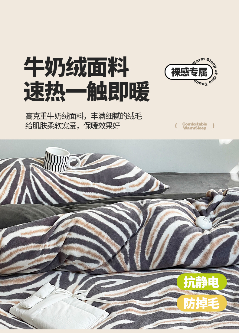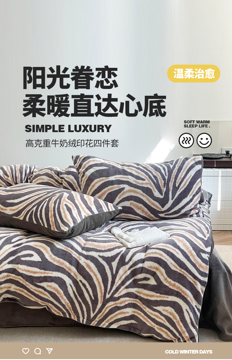 窝米 2023冬季新品高克重牛奶绒四件套系列 假日岛