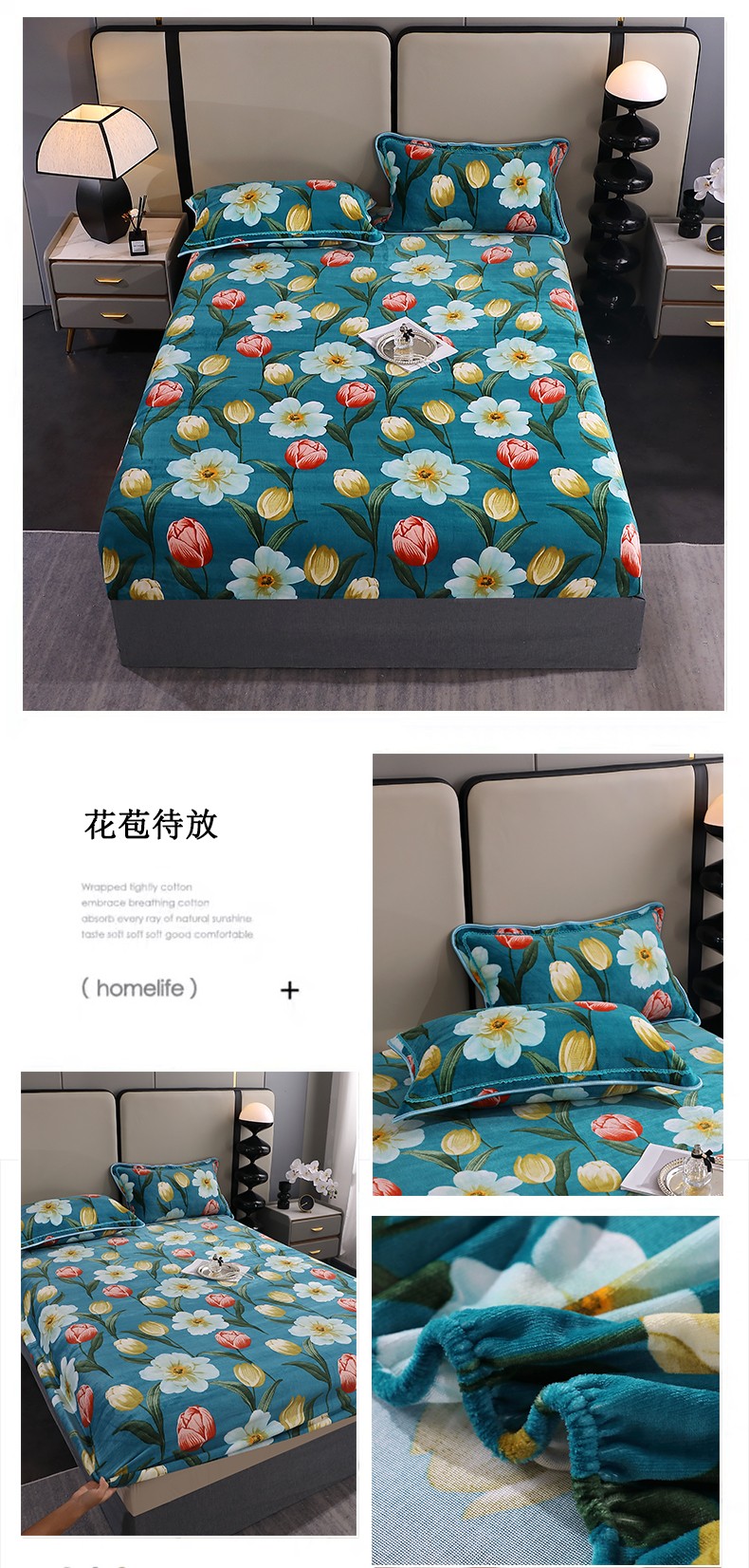 (总)锦绣家纺 2023新款牛奶绒印花床笠