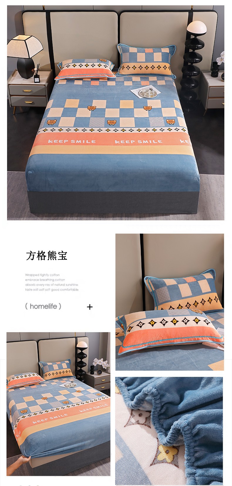 商品名称:(总)锦绣家纺 2023新款牛奶绒印花床笠