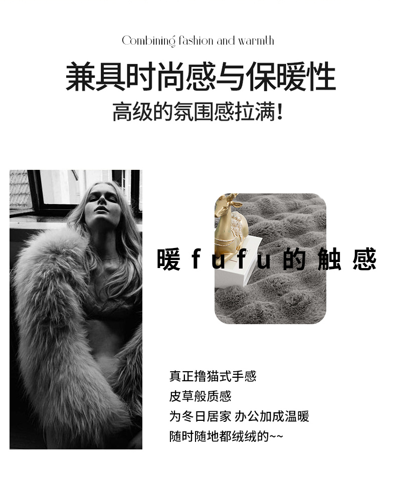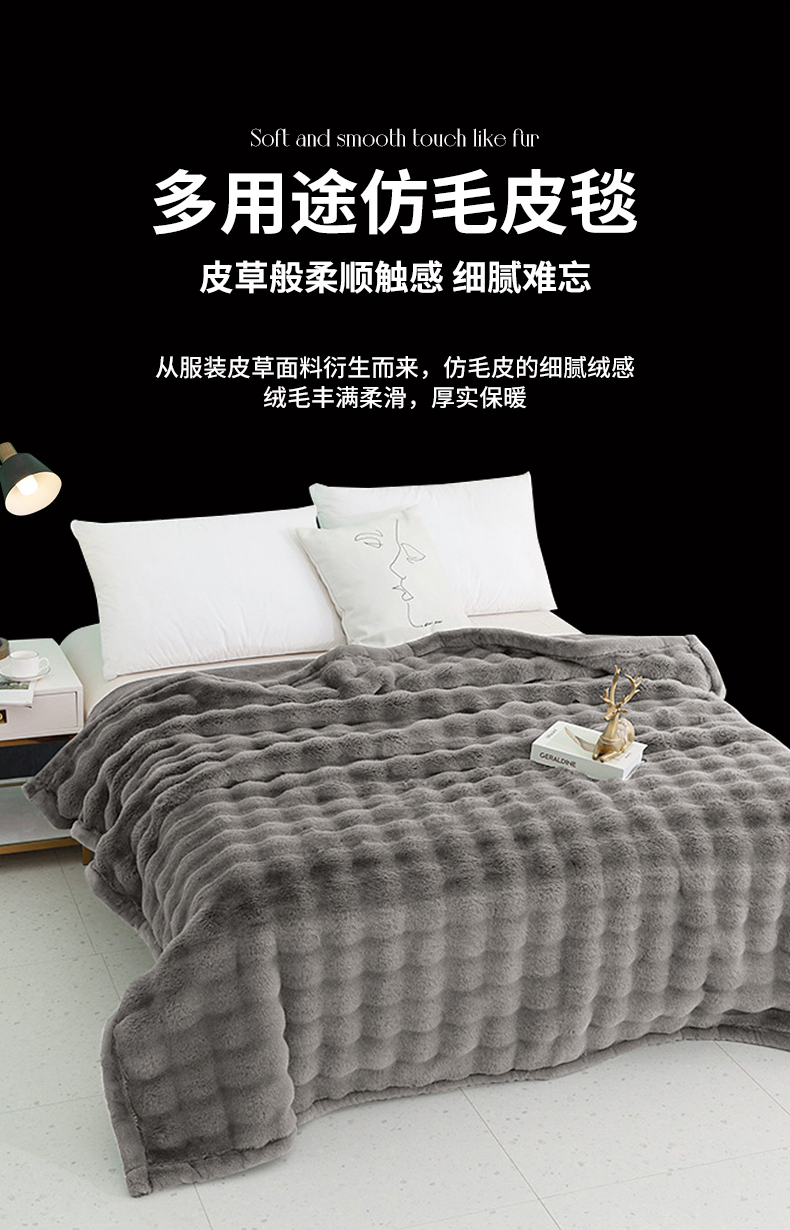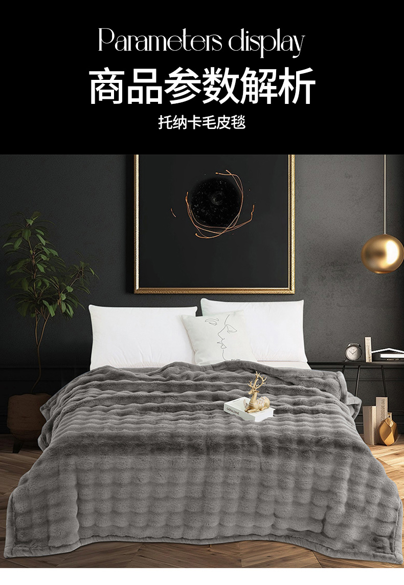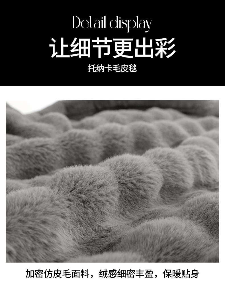 商品名称:丹兰 2025新款托纳卡艺术毛皮毯大兔毛毯 托纳卡-浅灰
