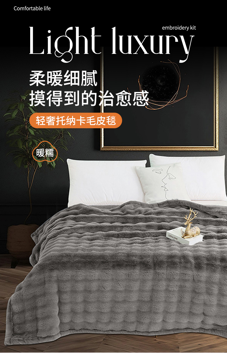 丹兰 2025新款托纳卡艺术毛皮毯大兔毛毯 托纳卡-浅灰