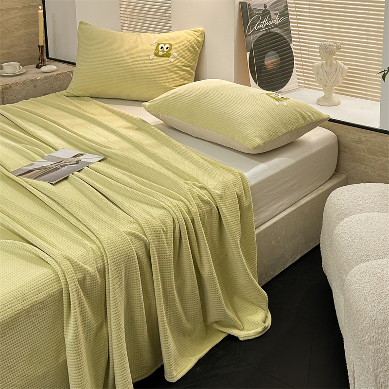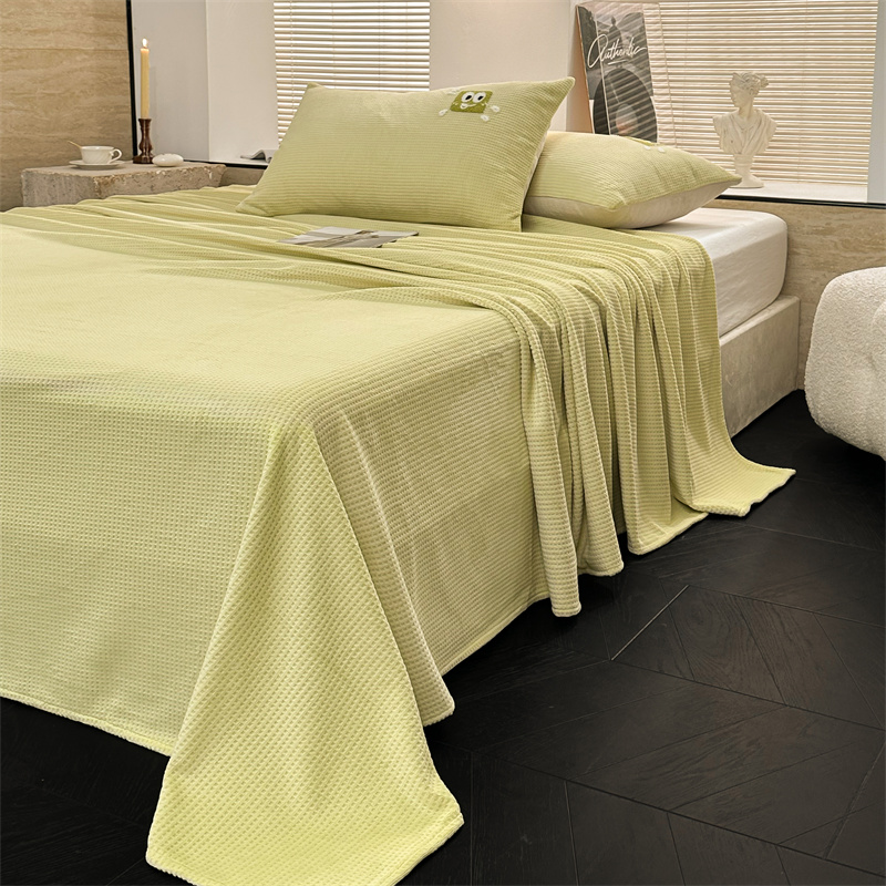 商品名称:洋铭区(原狠狠爱) 2023新款华夫格单品绒床单 华夫格-暖阳绿