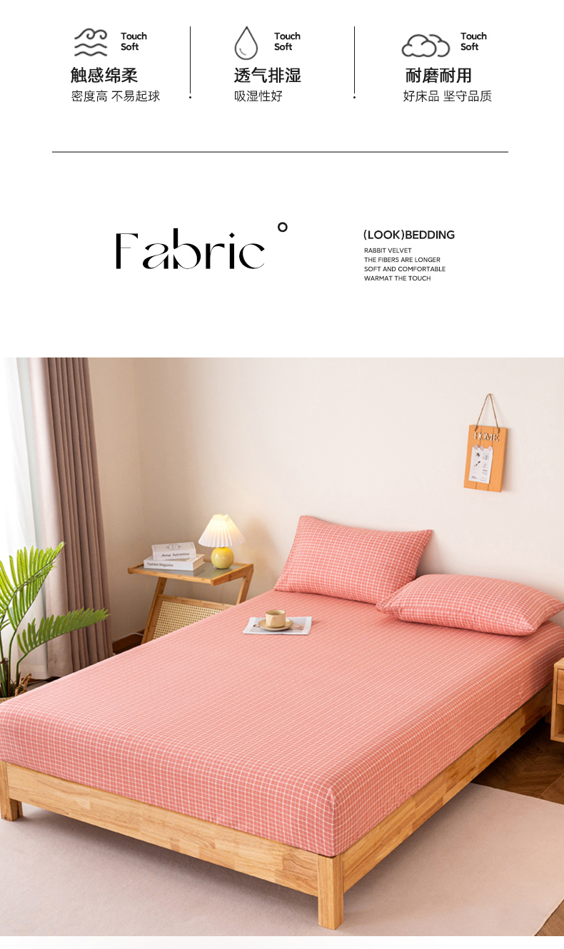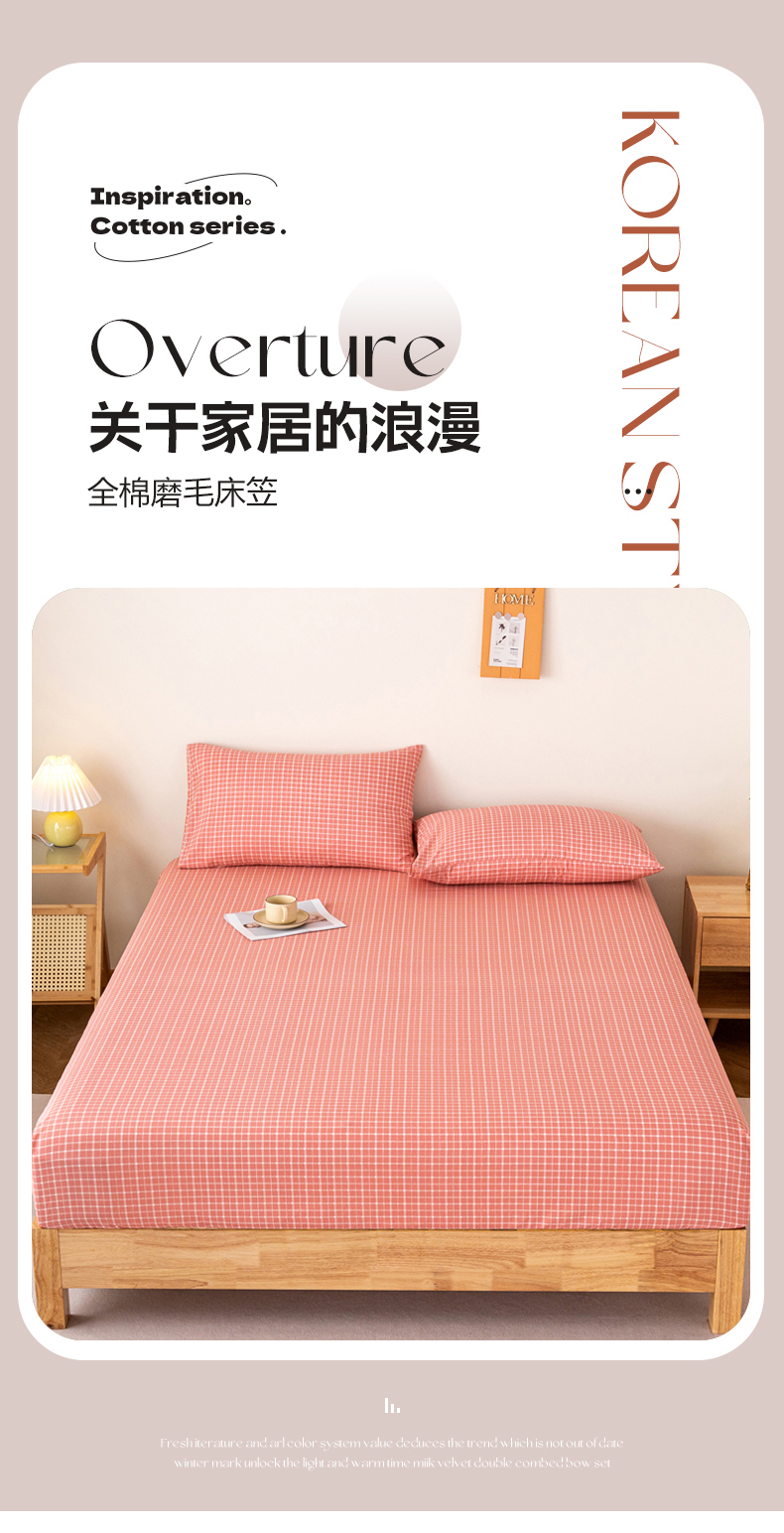 无印风全棉床笠磨毛床笠纯棉床笠床垫保护套【量大优惠】 欧亚利-粉