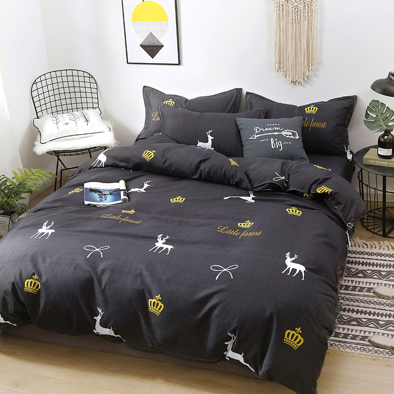 卡斯诺家纺馆 2023新款芦荟棉四件套花型1 驯鹿