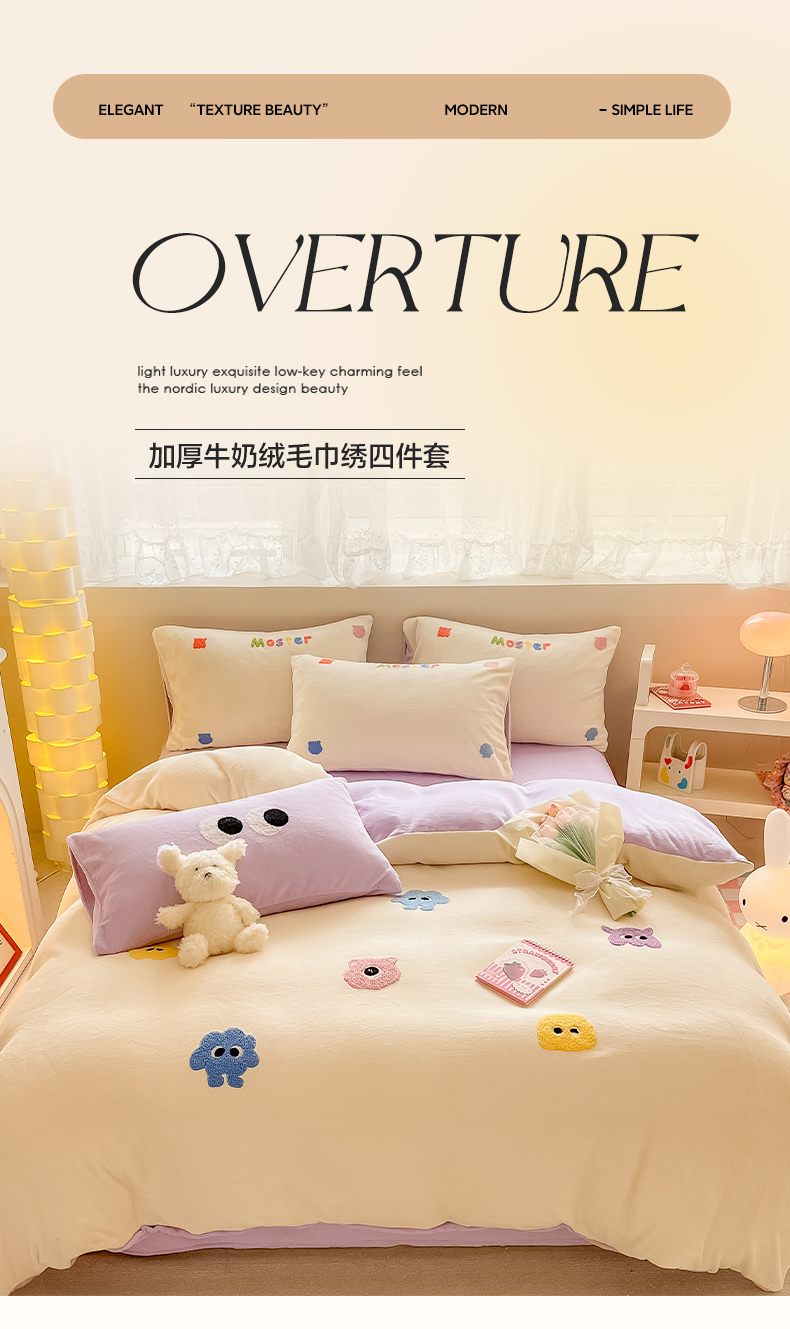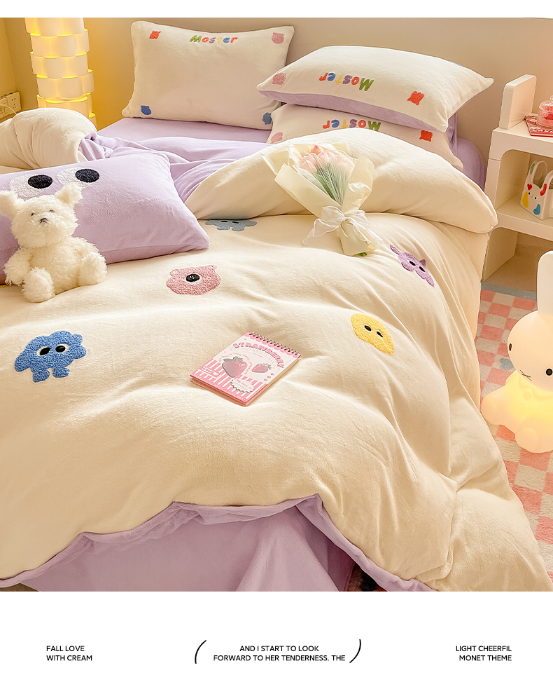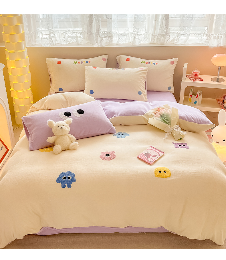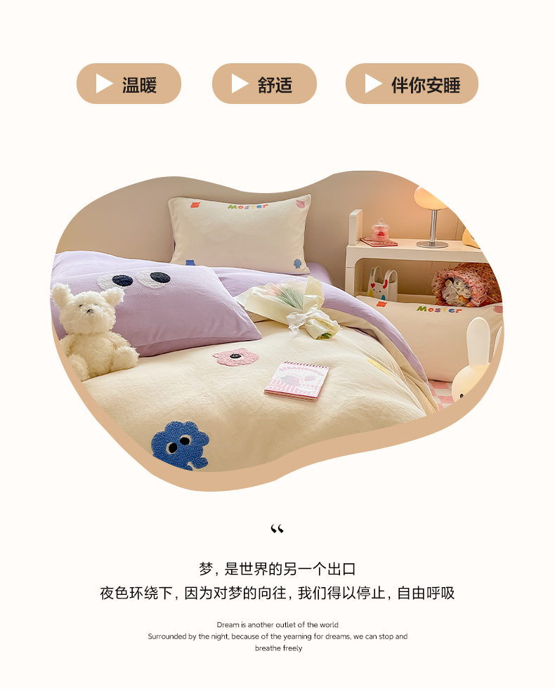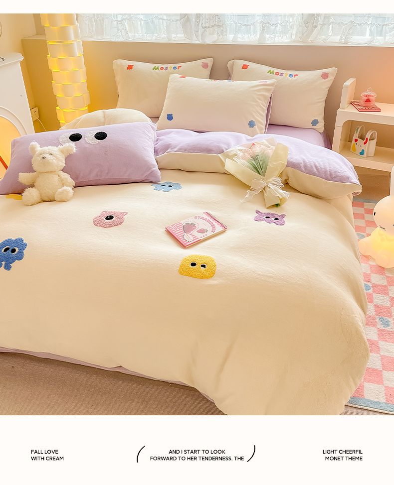 当前位置: 91家纺网 > 商品网购 > 床品套件 > 四件套 > 牛奶绒四件套 > 眠屿家纺 2023新款牛奶绒毛巾绣四件套(温馨版) 小怪兽聚会