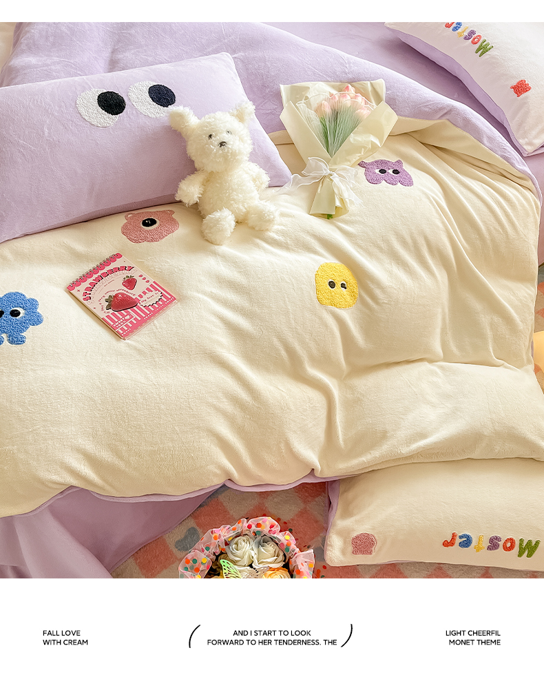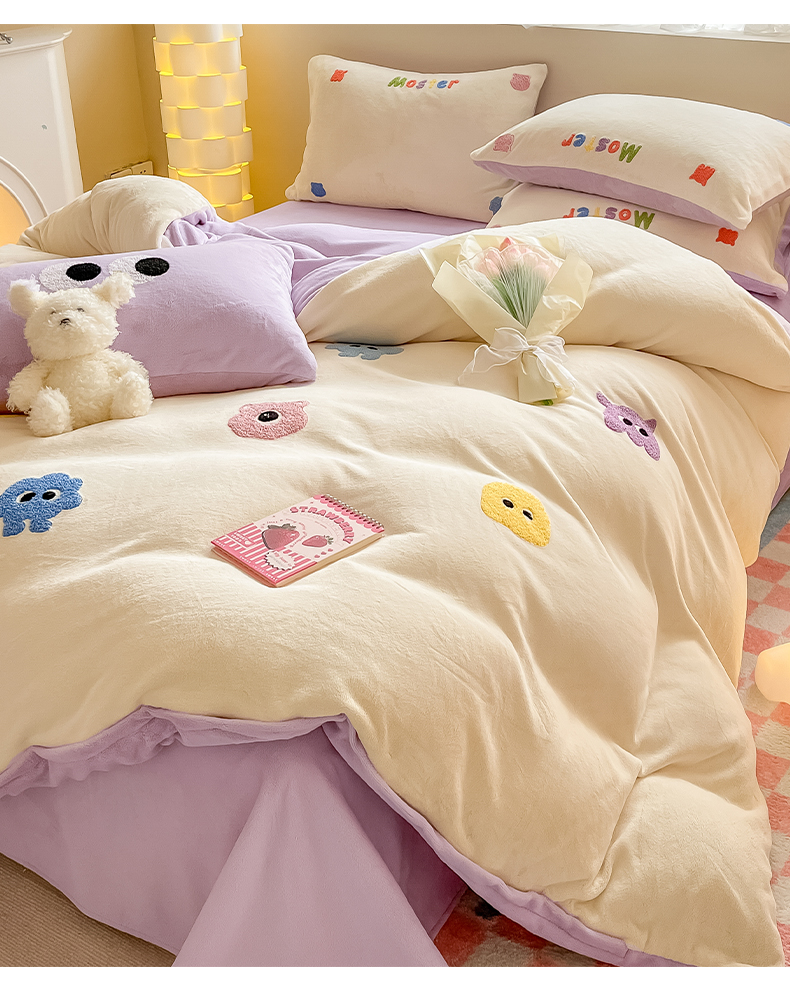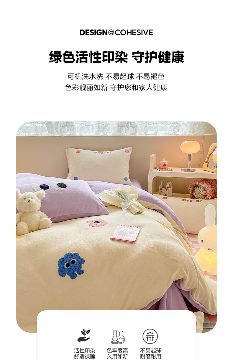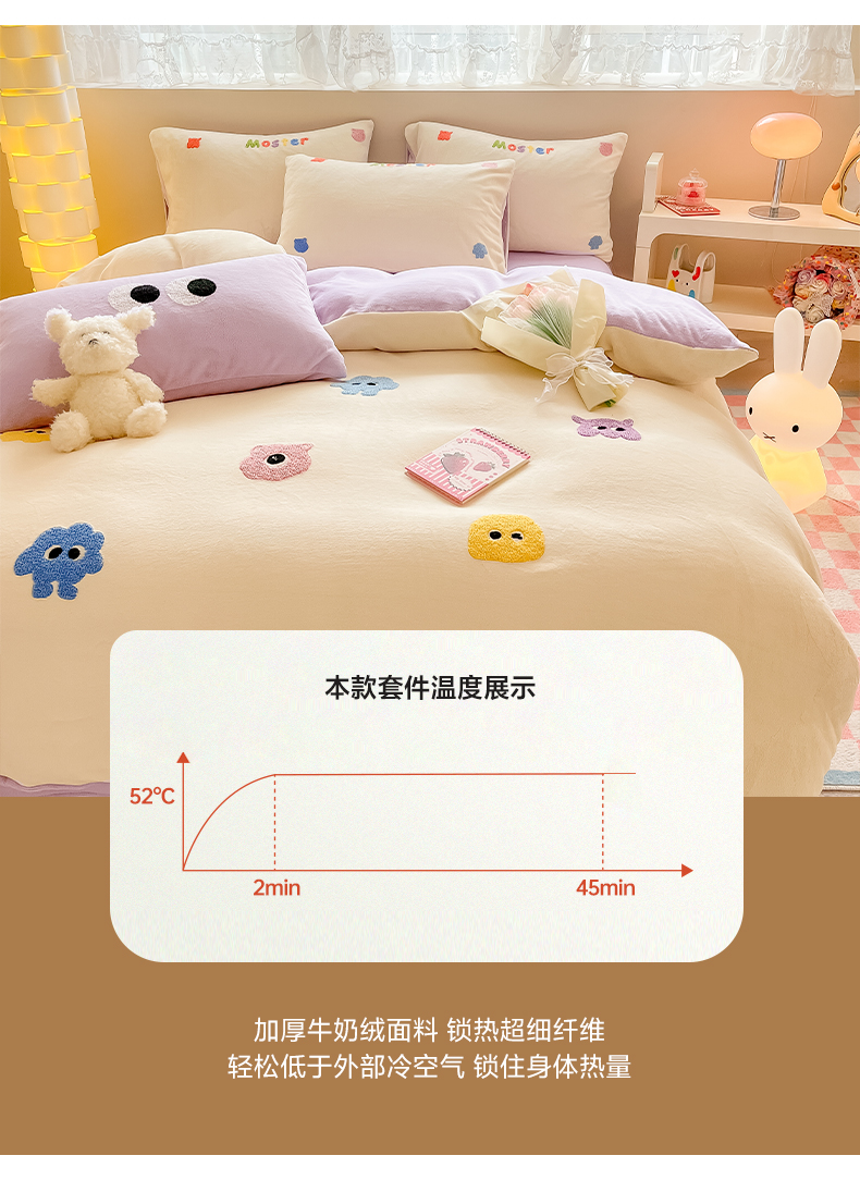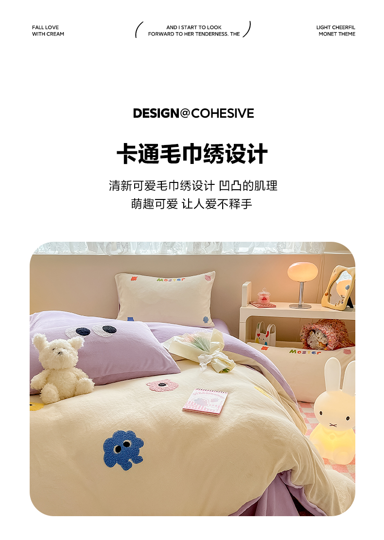 当前位置: 91家纺网 > 商品网购 > 床品套件 > 四件套 > 牛奶绒四件套 > 眠屿家纺 2023新款牛奶绒毛巾绣四件套(温馨版) 小怪兽聚会