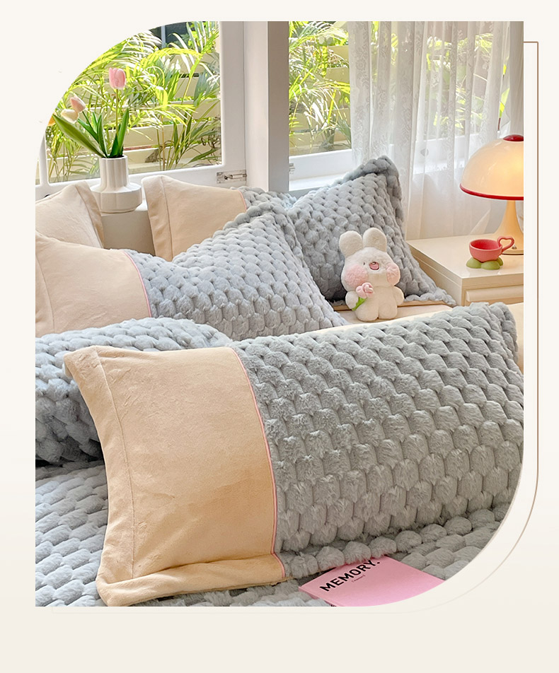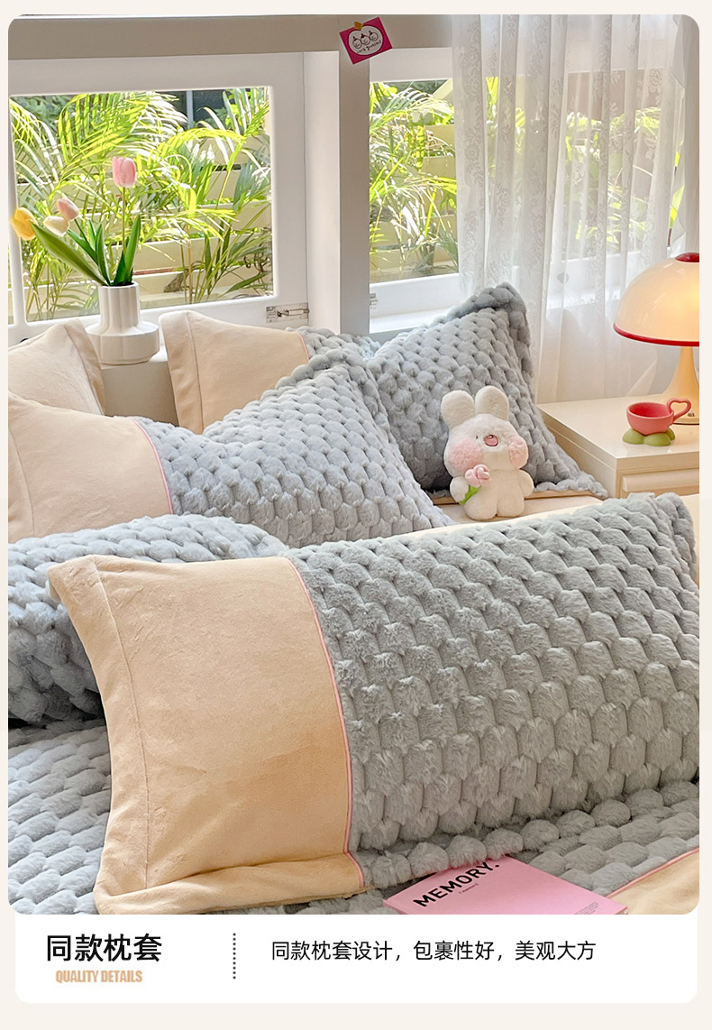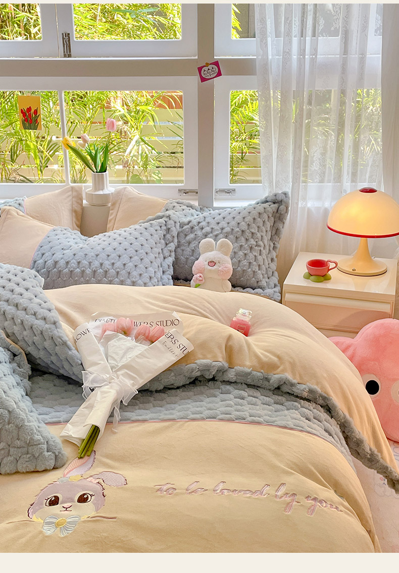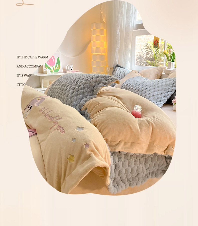 (总)爱上家居 2024新款AB版兔兔绒牛奶绒四件套,粉色,灰色,绿色,驼色,紫色