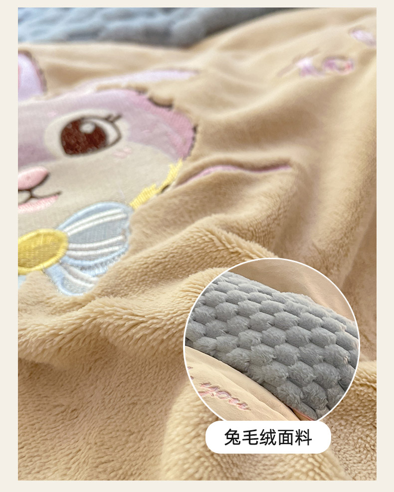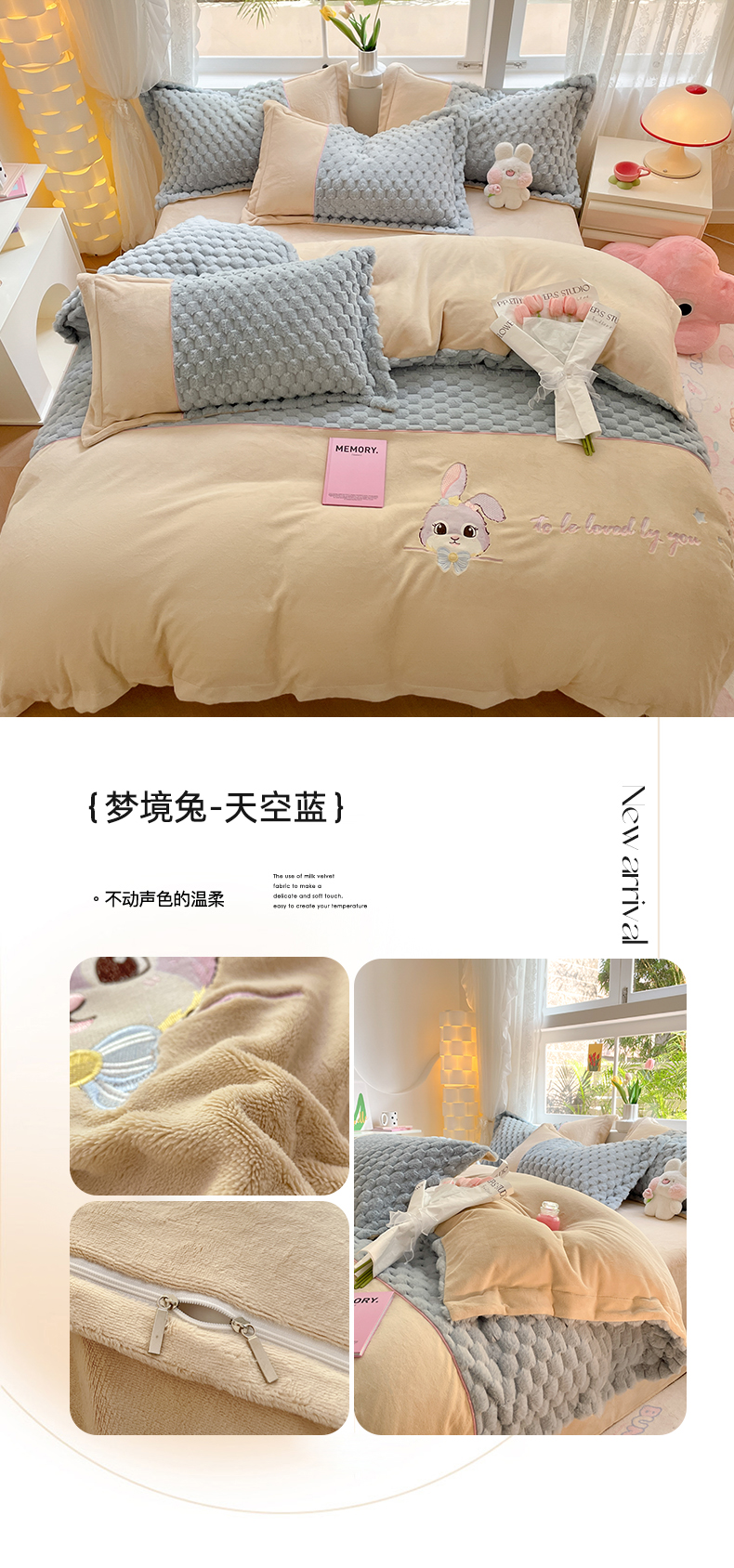 商品名称:爱上家居 2023新款牛奶绒兔毛绒四件套 梦境兔 梦境兔-天空蓝