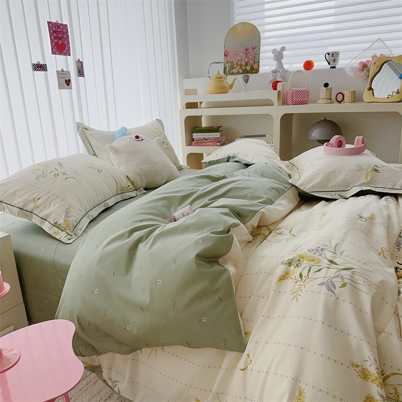 (总)于果 2024新款100S长绒棉磨毛刺绣四件套,随风麦动 -松柏绿,随风麦动-梦幻紫,随风麦动-普尔粉,随风麦动-珊瑚蓝