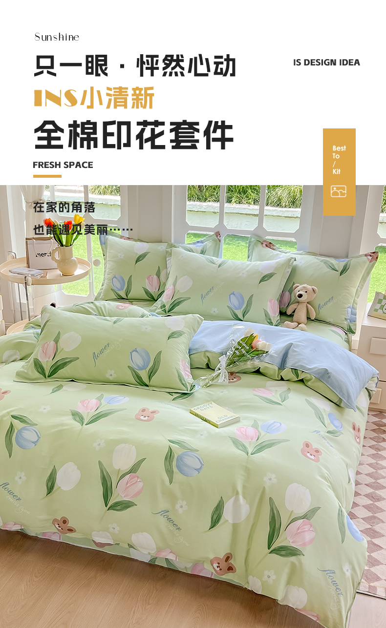 当前位置: 91家纺网 > 商品网购 > 床品套件 > 四件套 > 全棉普通四件套 > 绵庭家纺 2023新款12868系列全棉小清新印花四件套 丁香兔
