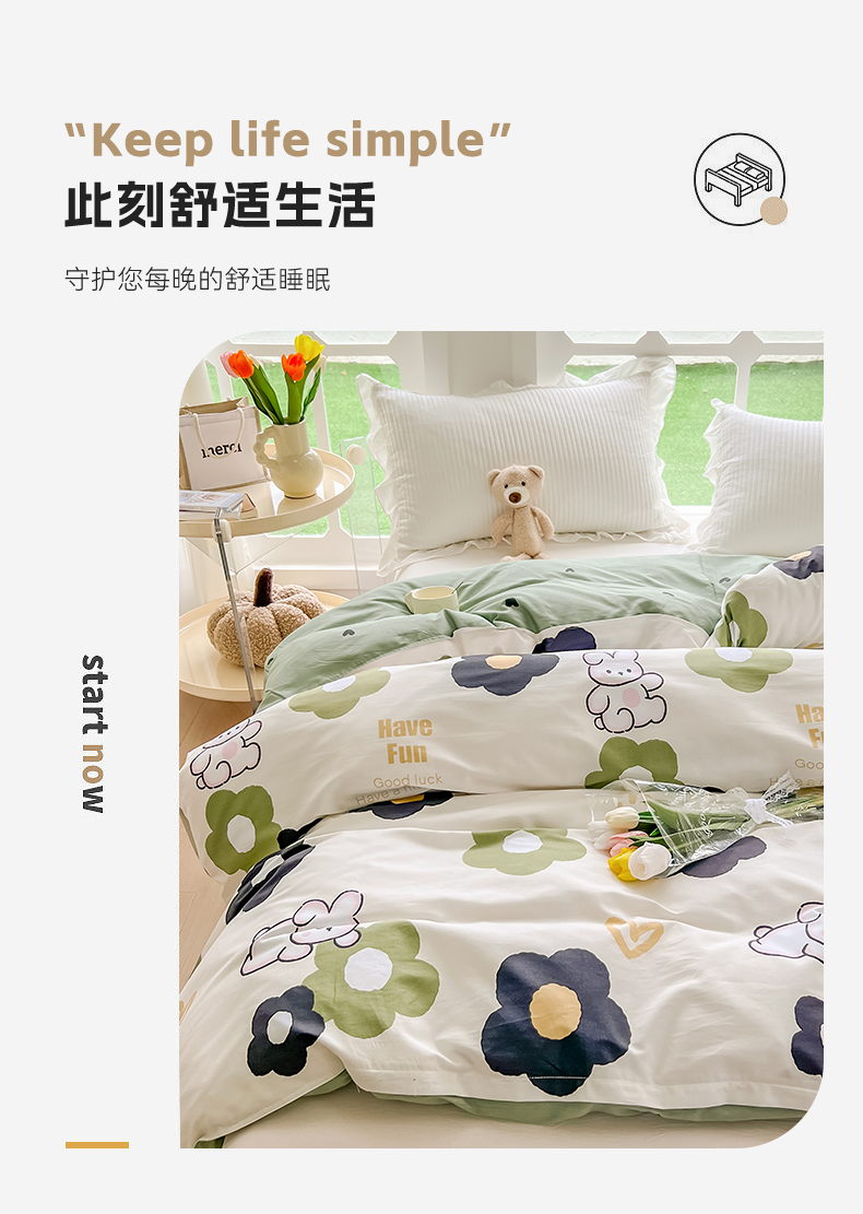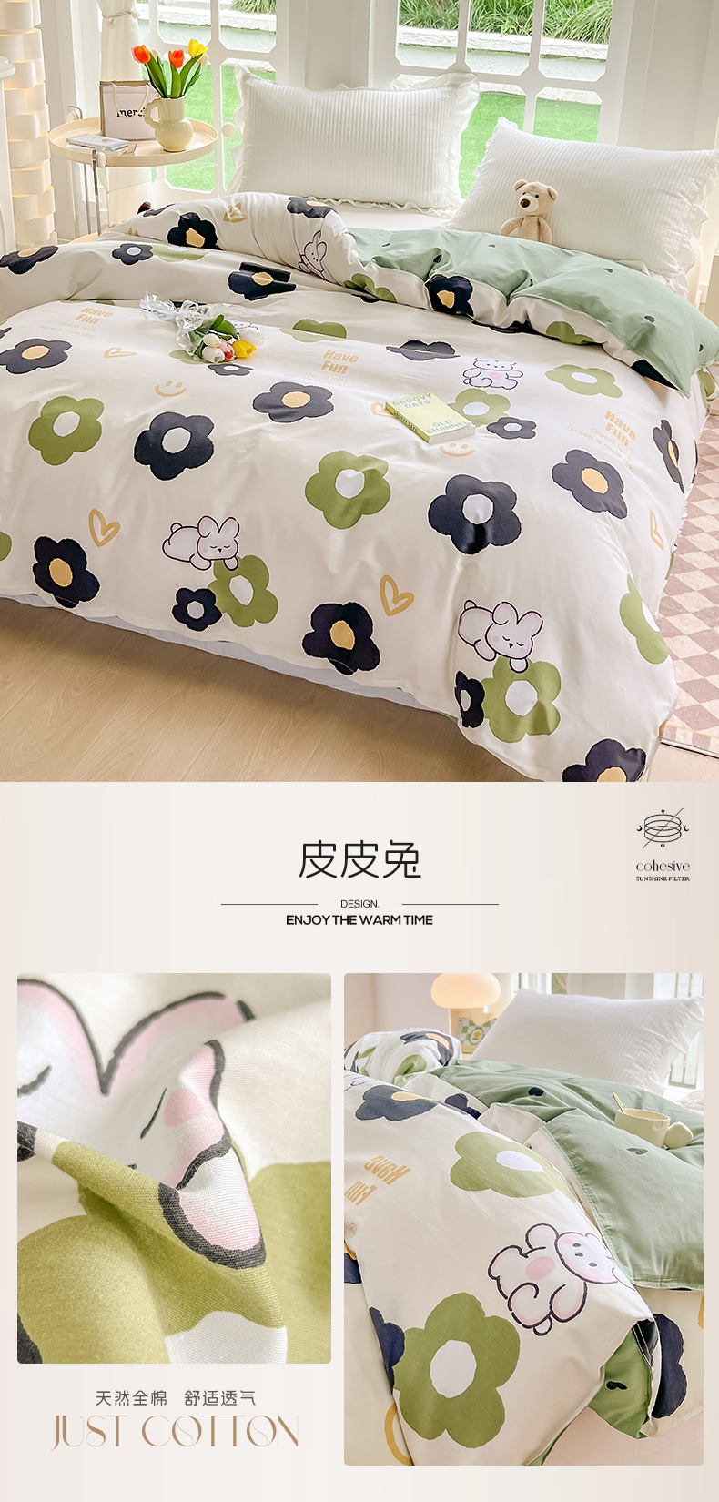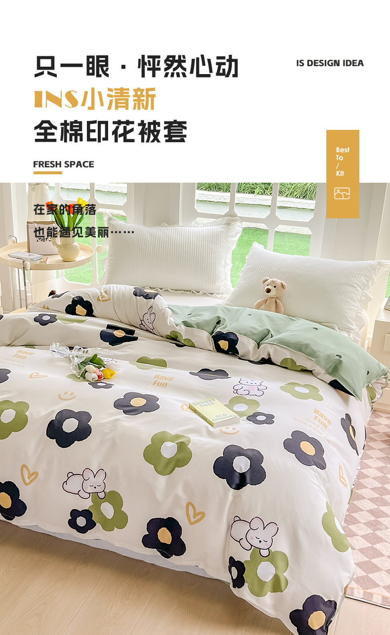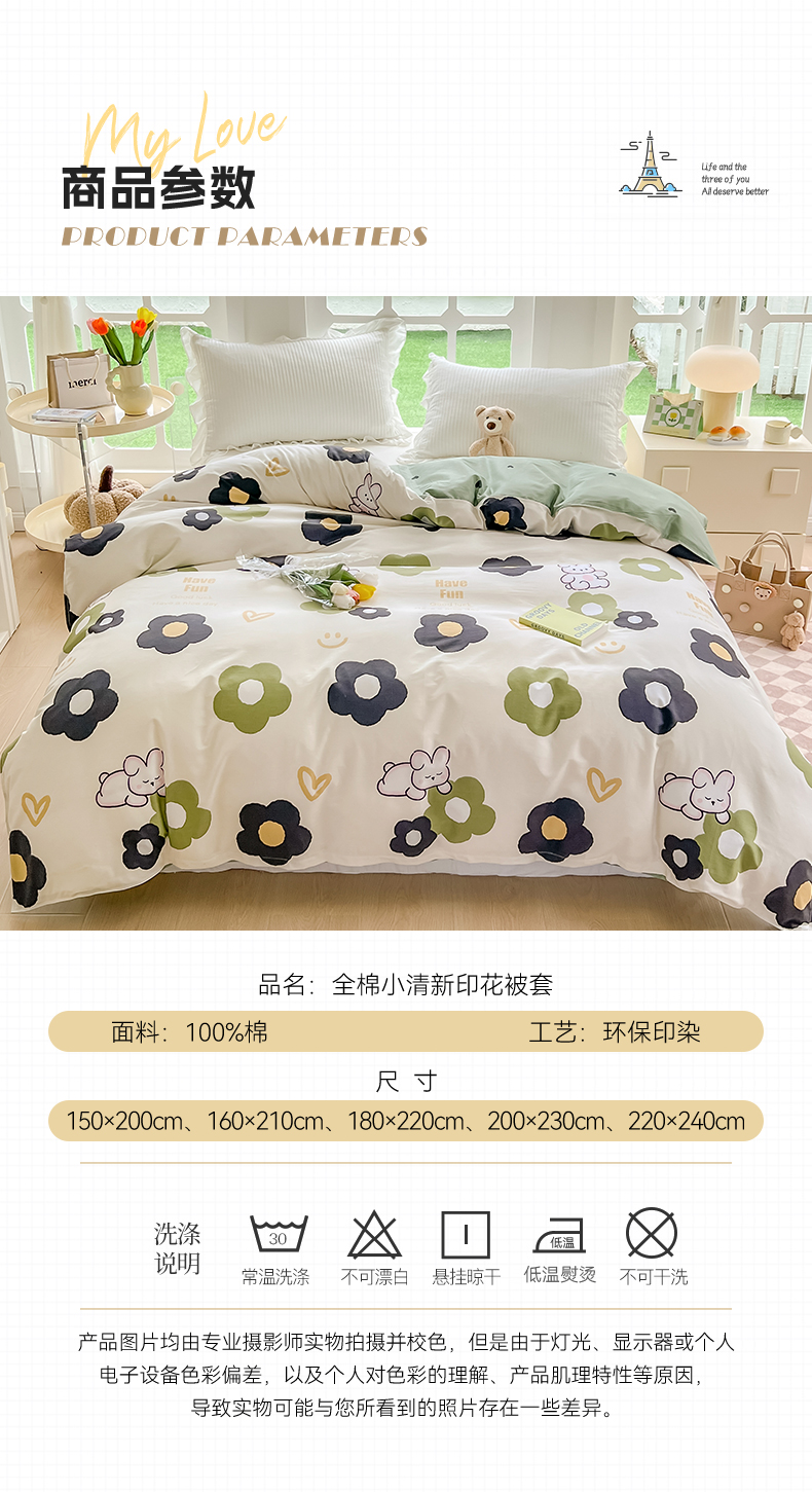 商品名称:绵庭家纺 2023新款12868系列全棉小清新印花单被套 皮皮兔