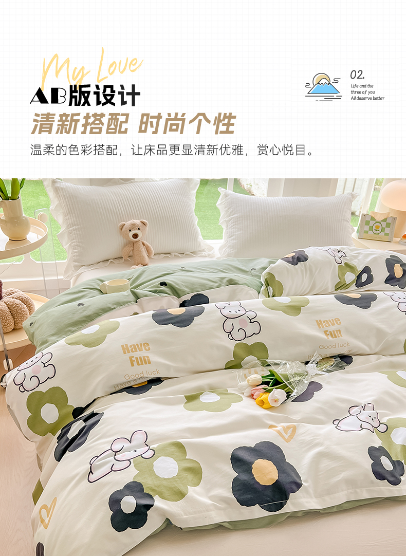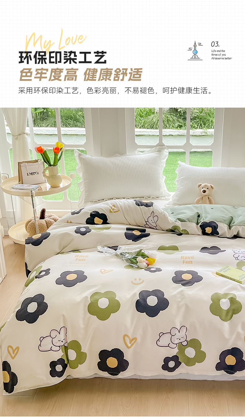 绵庭家纺 2023新款12868系列全棉小清新印花单被套 皮皮兔