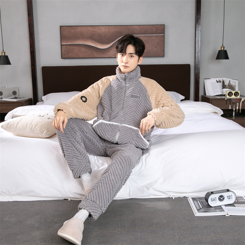 (总)洛兰沙家居馆 2024新款清新睡衣女秋冬三层夹棉珊瑚绒加厚保暖两件套女士可外穿加绒家居服,粉色,灰色,白色,玉色