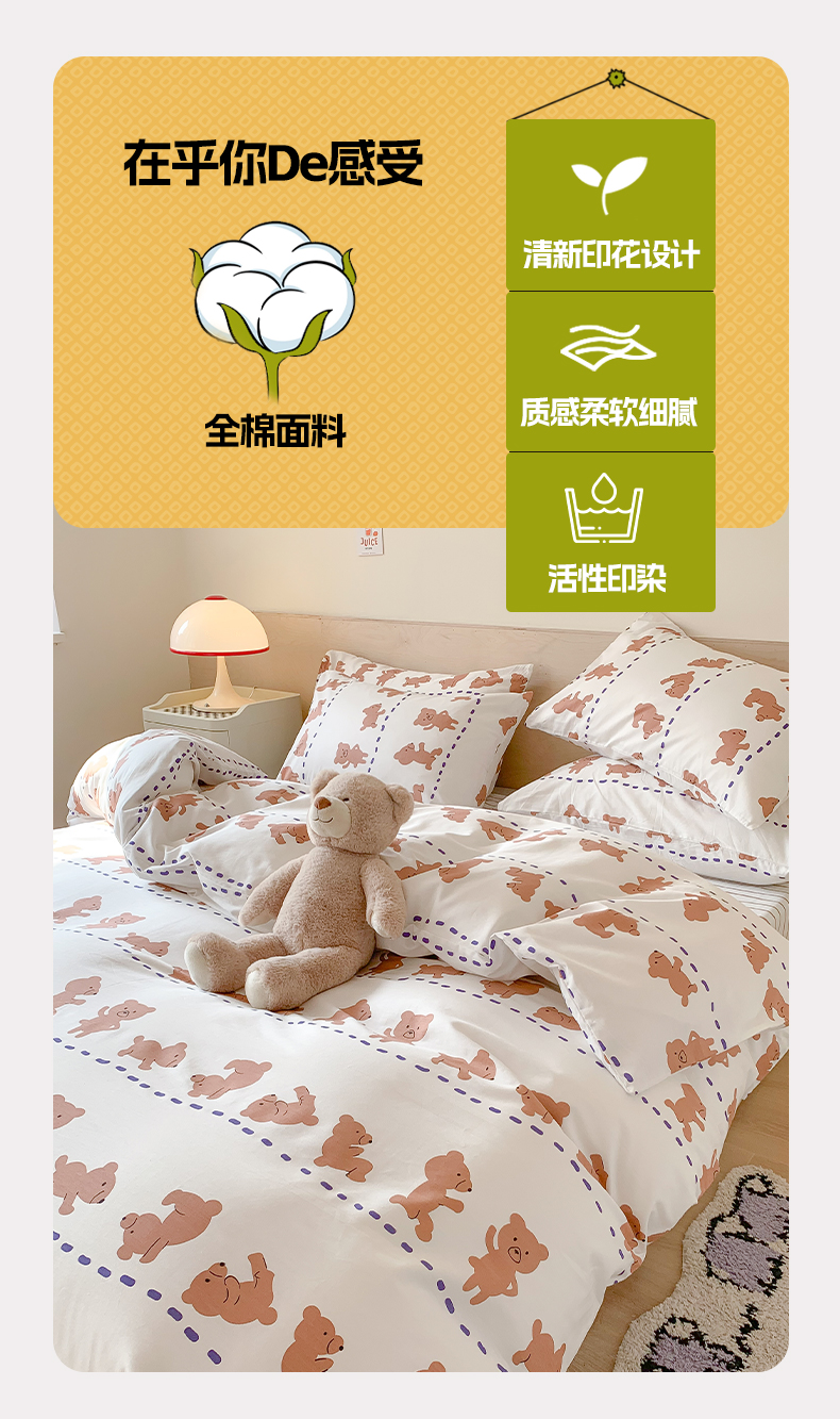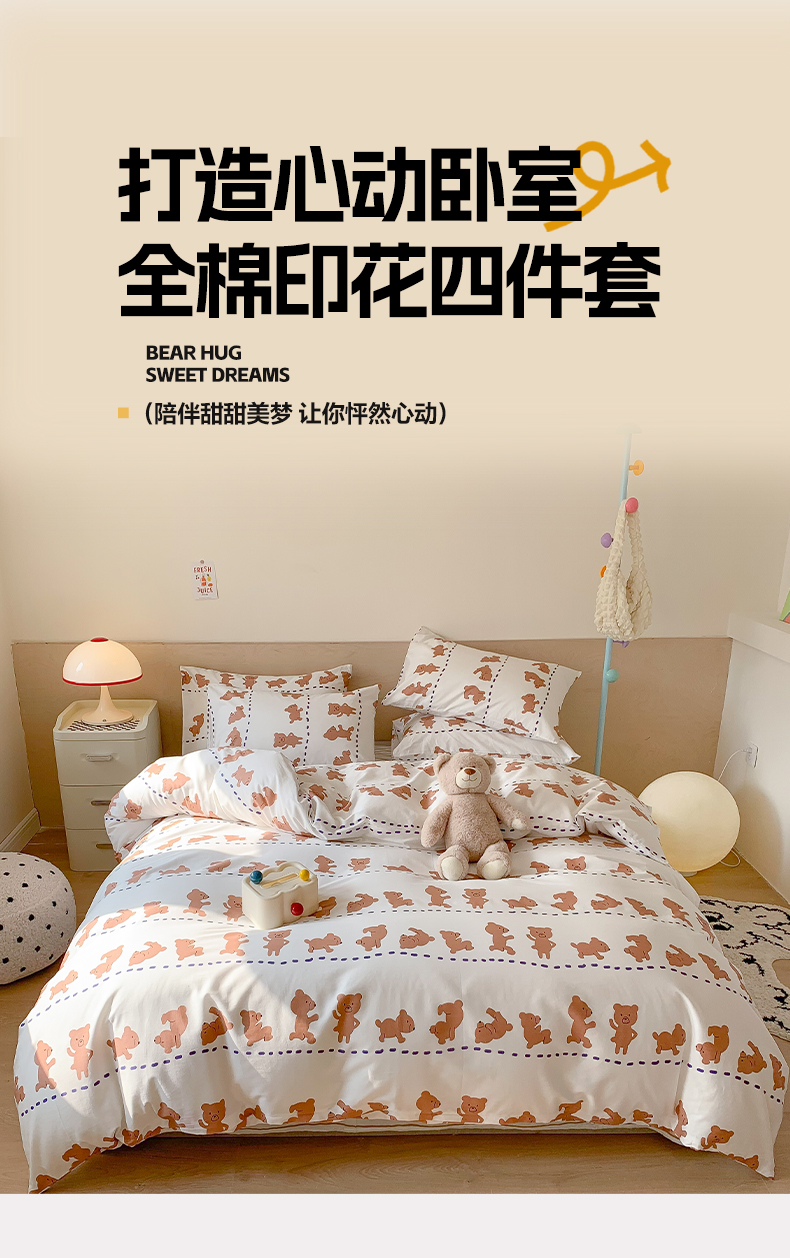商品名称:澳萝拉 2024新款全棉印花亲肤舒适四件套 运动熊