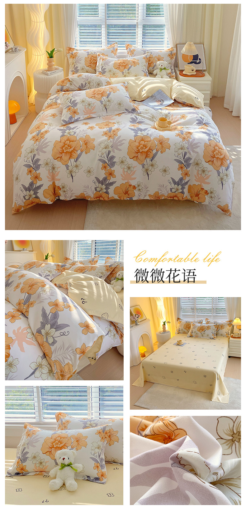 好亿来 2025新款植物羊绒加厚斜纹磨毛四件套微微花语