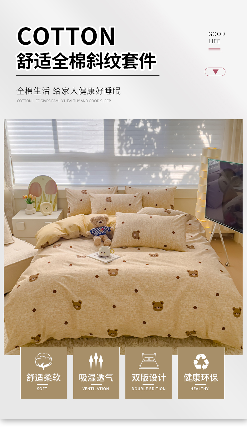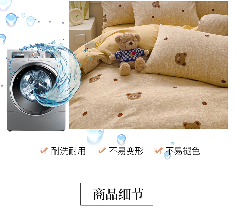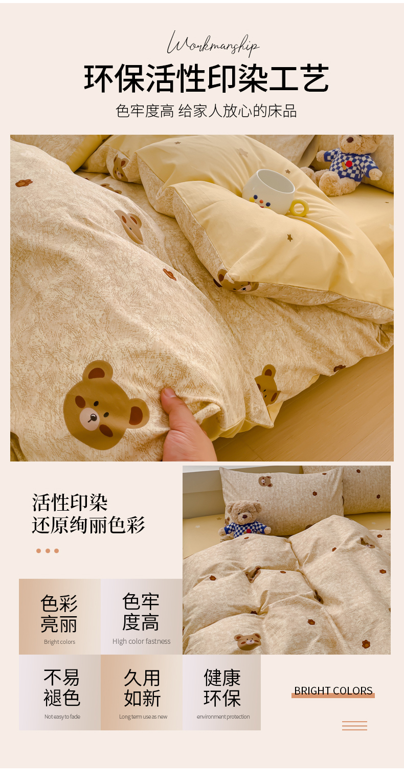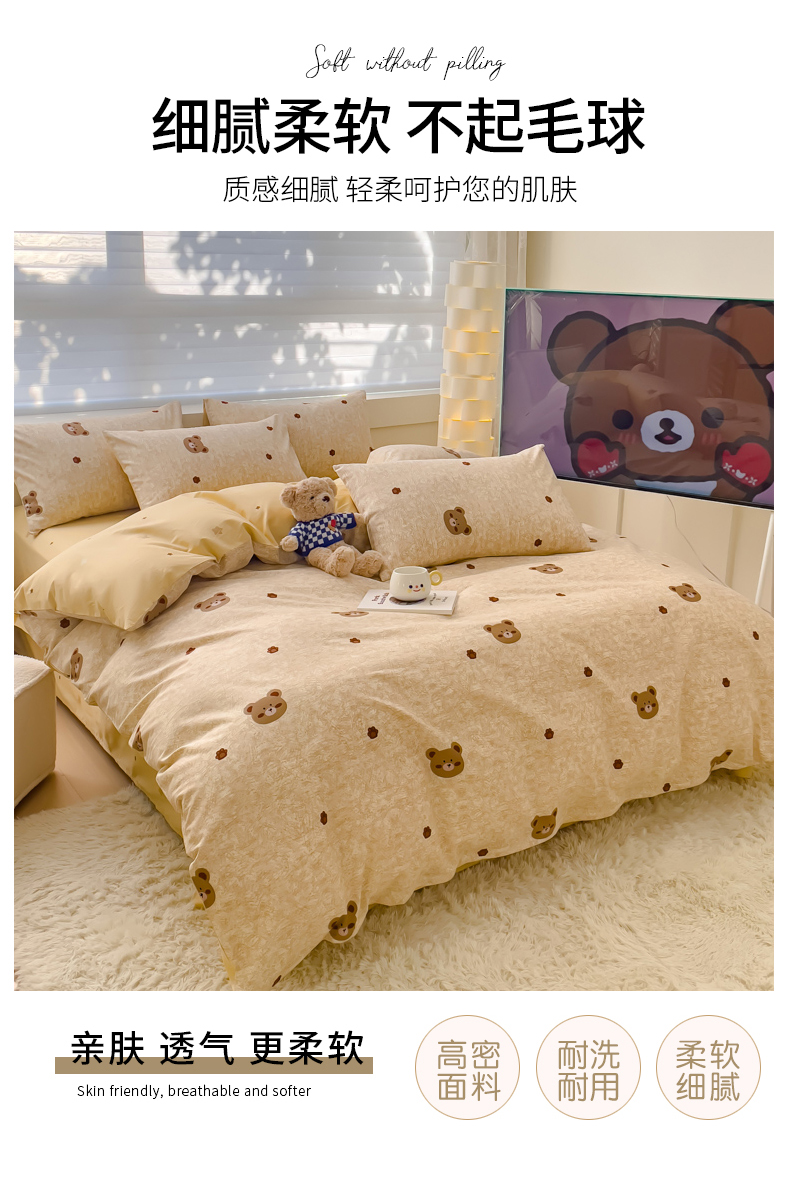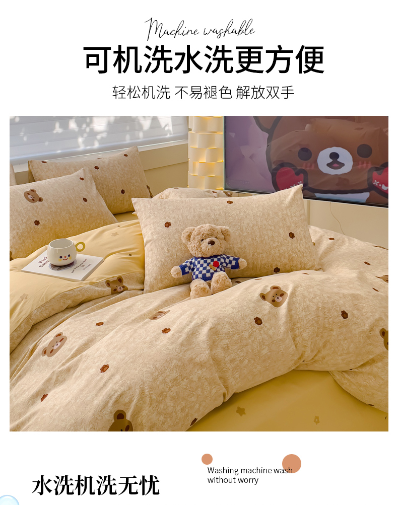 当前位置: 91家纺网 > 商品网购 > 床品套件 > 四件套 > 全棉普通四件套 > 金丝鸟 2024新款全棉四件套可爱卡通系列四件套 咖色波点小熊