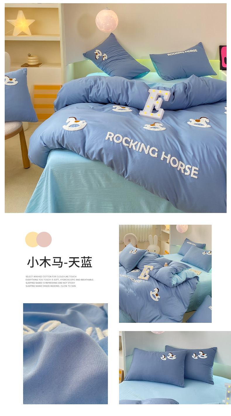 商品名称:漫仙阁 2024新款毛巾绣四件套 小木马-天蓝