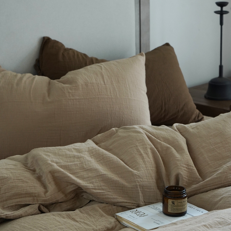 商品名称:子和家居 2024新款全棉美拉德皱皱纱成品染四件套 奶茶色