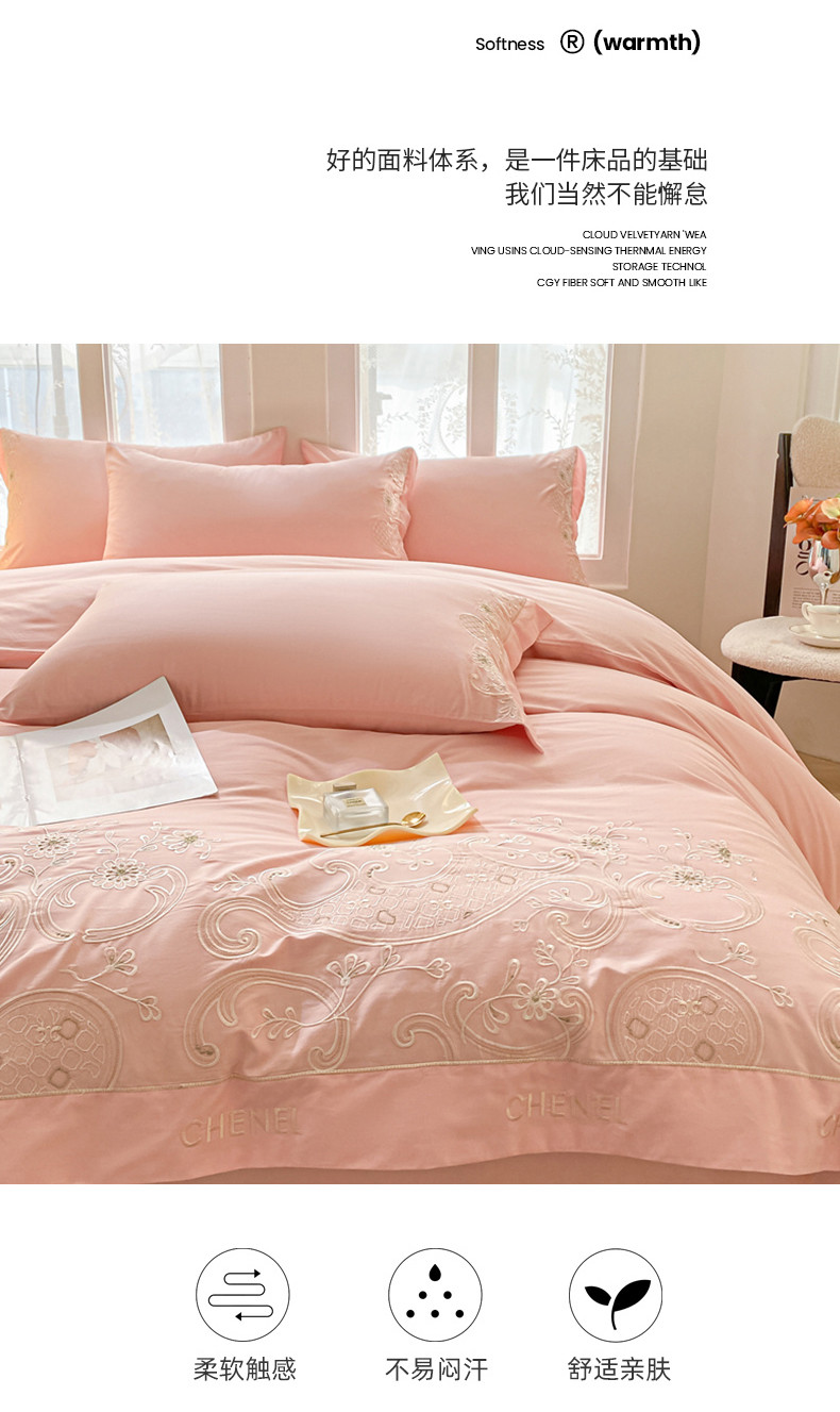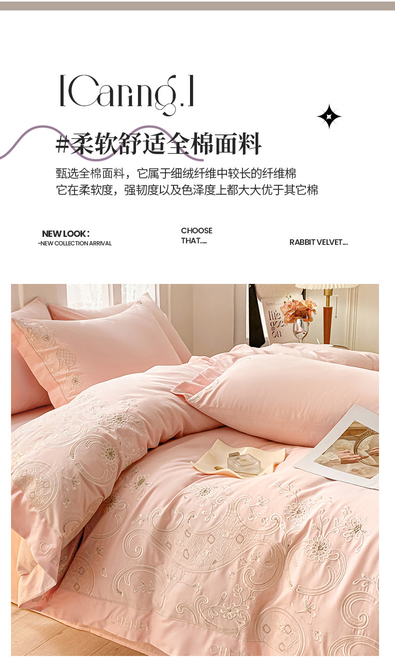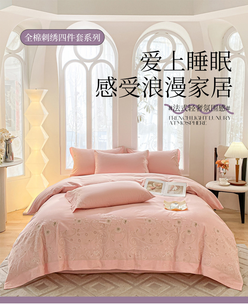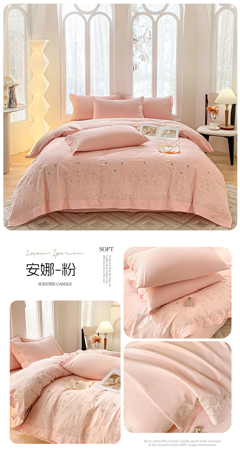 商品名称:苏美 2024新款全棉刺绣四件套安娜系列 安娜-粉