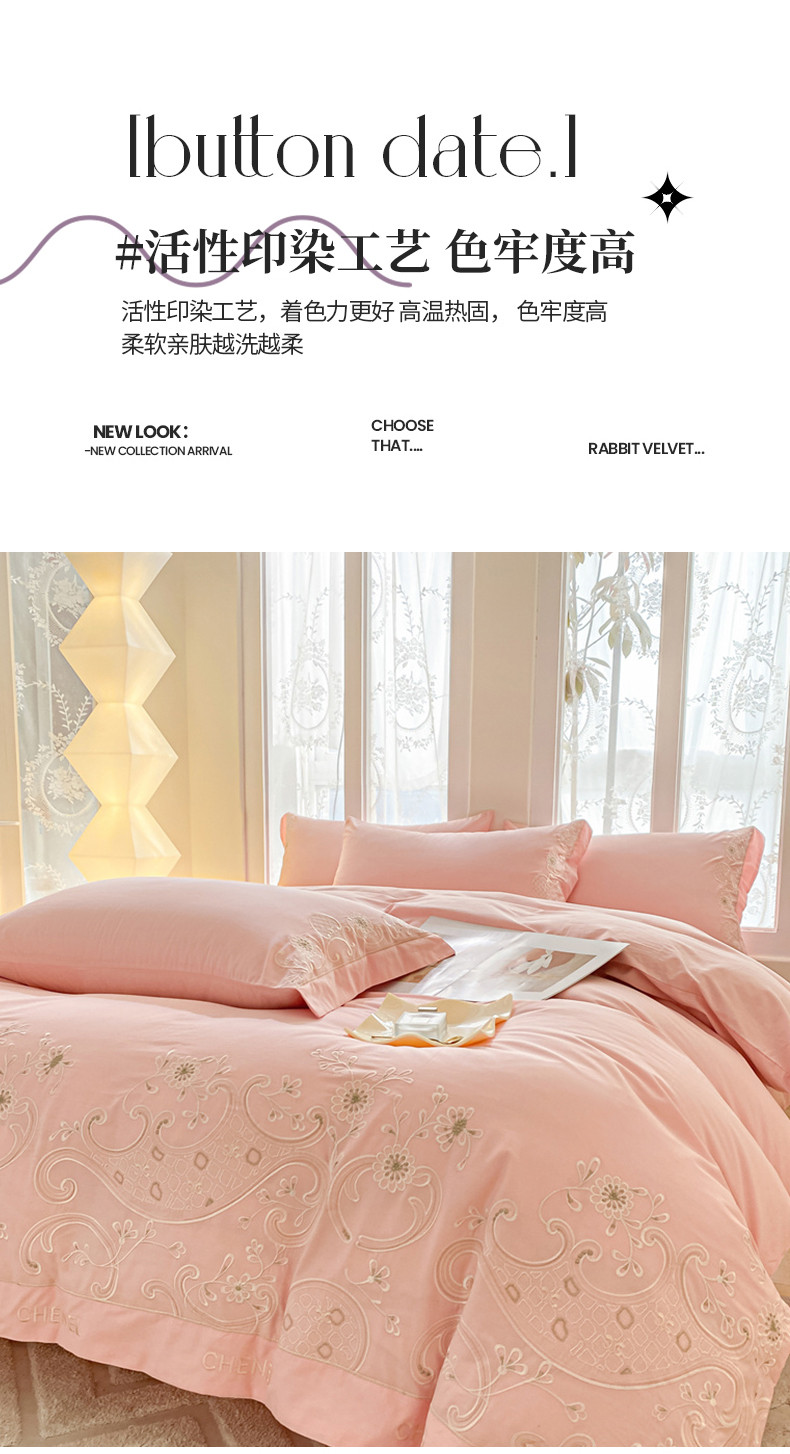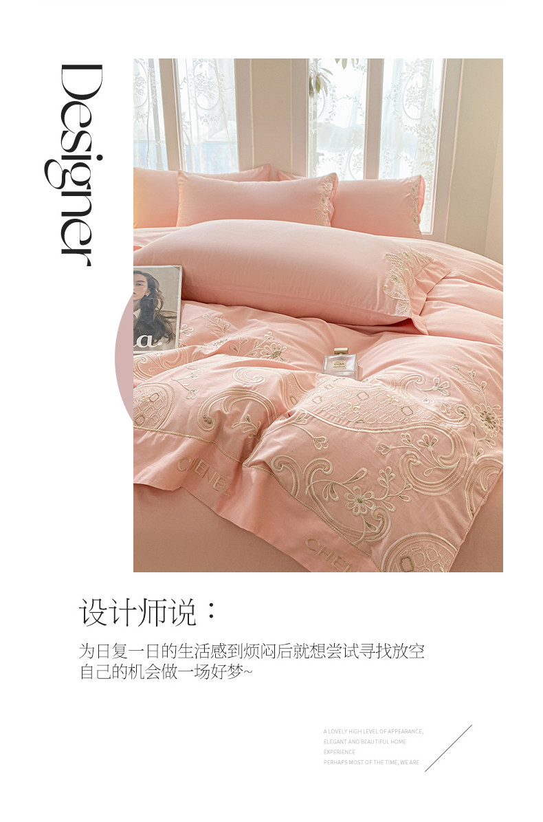 苏美 2024新款全棉刺绣四件套安娜系列 安娜-粉