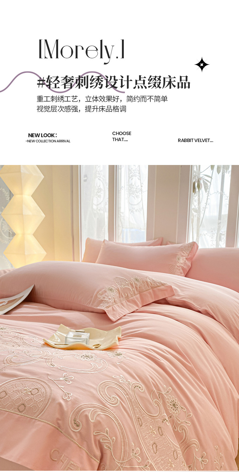 (总)苏美 2025新款全棉肌理纹绣花四件套-香榭,香榭-奶咖,香榭-浅粉,香榭-浅灰