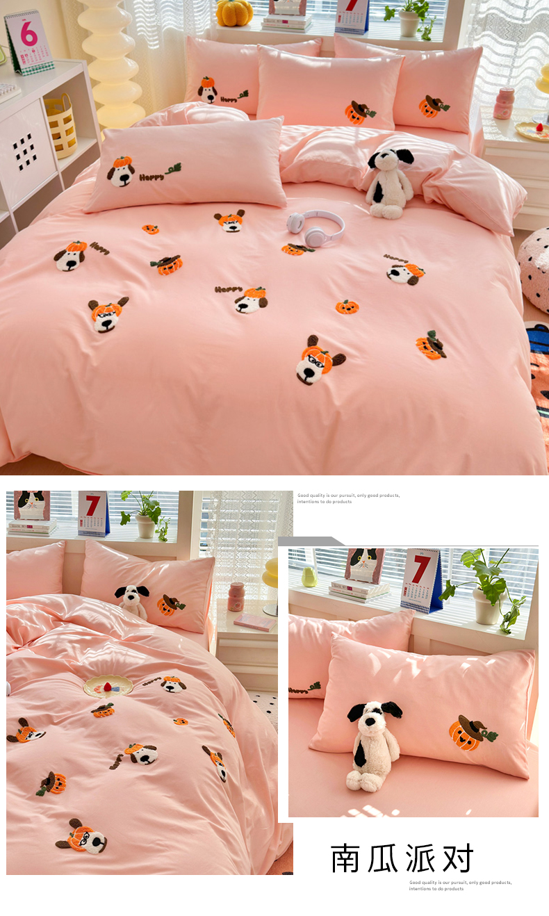 当前位置: 91家纺网 > 商品网购 > 床品套件 > 四件套 > 全棉普通四件套 > 锦觅 2024春夏新品韩式小清新全棉水洗棉毛巾绣40支重工刺绣纯棉四件套 南瓜派对