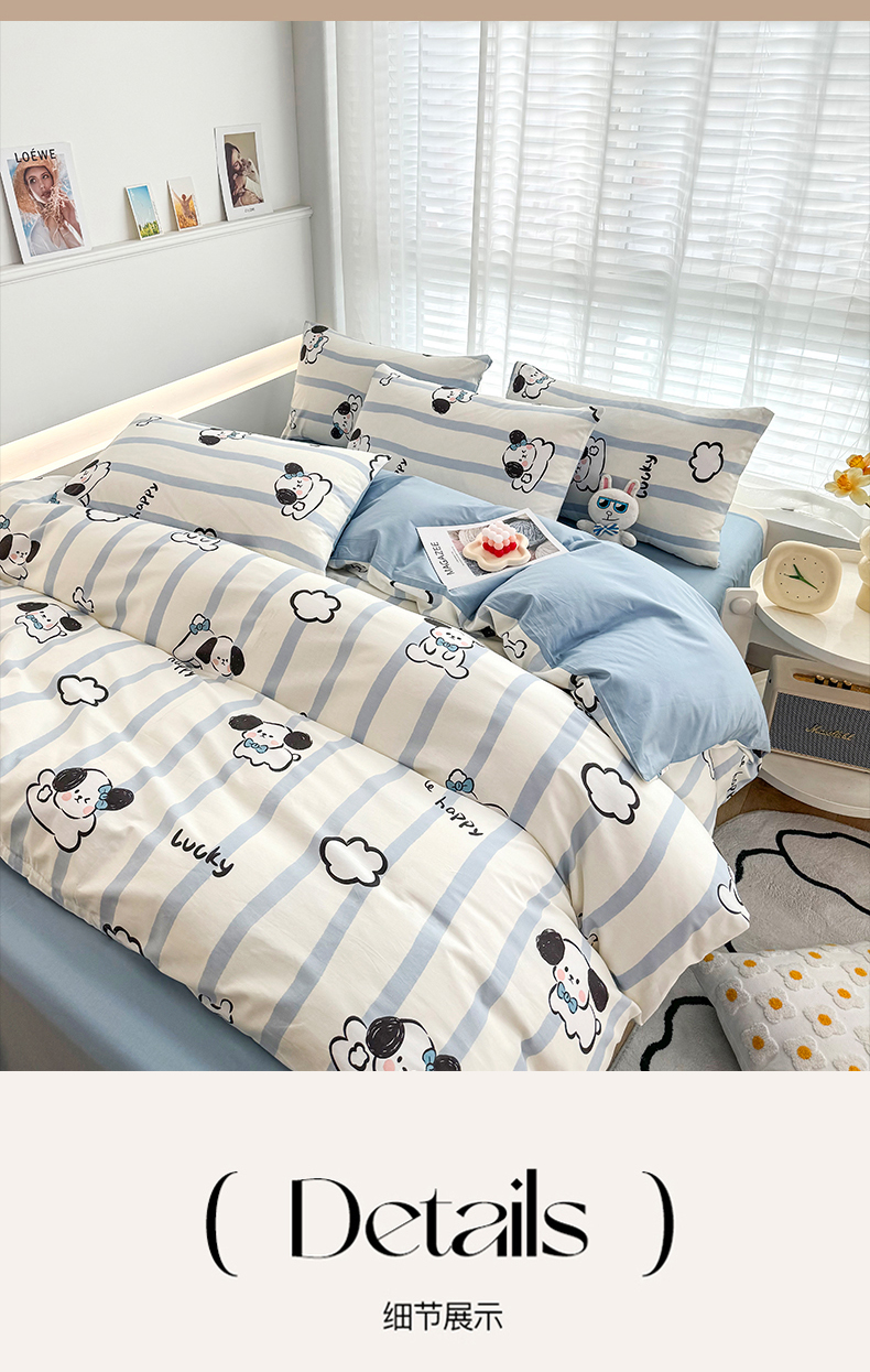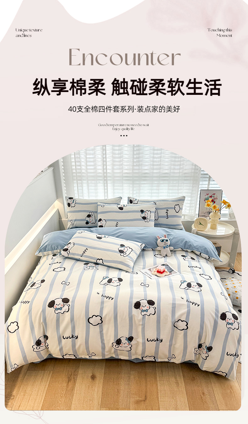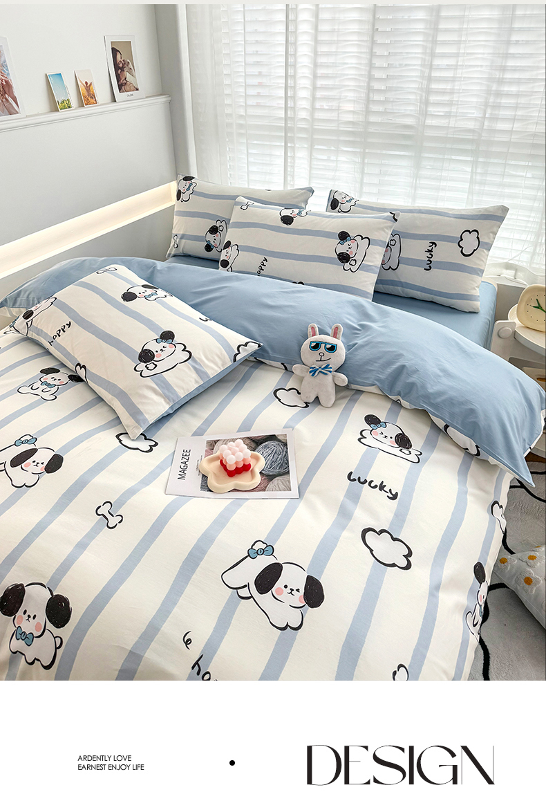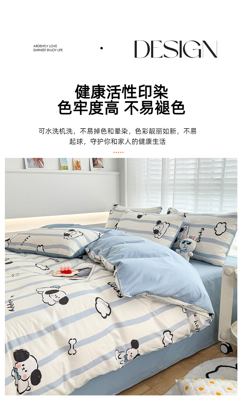 潮邦创意家居 2025新款全棉13070多风格纯棉四件套-卡通系列 条纹狗