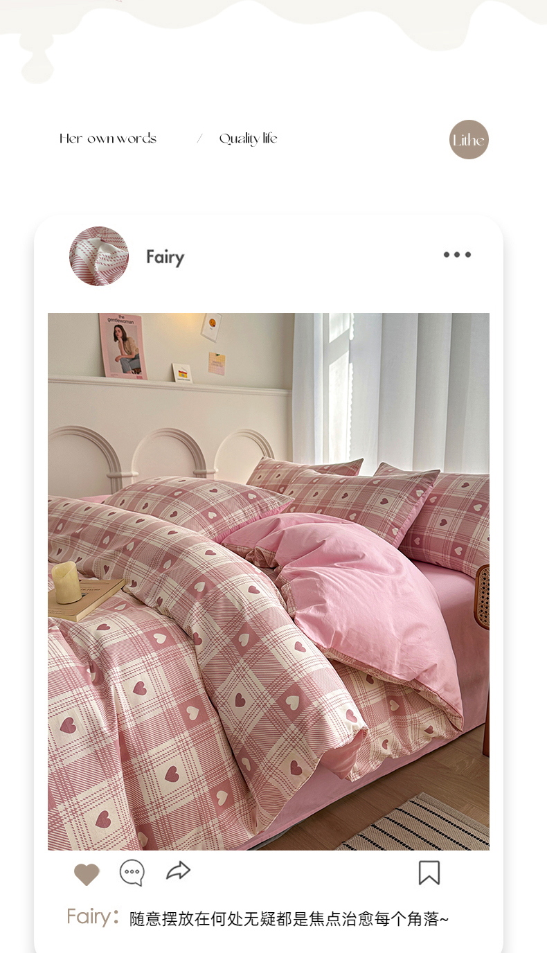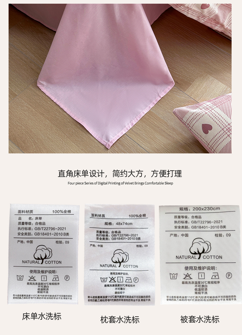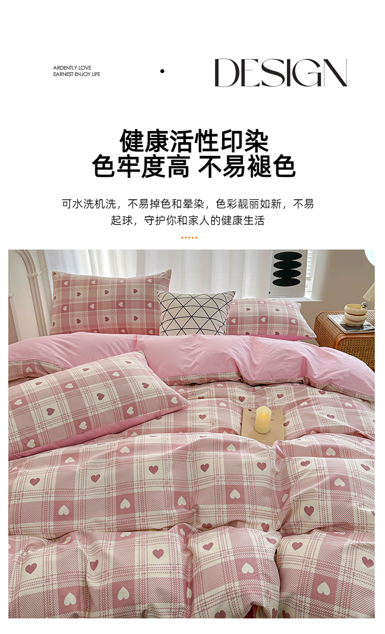 商品名称:潮邦创意家居 2025新款全棉13070多风格纯棉四件套 美菱格 粉