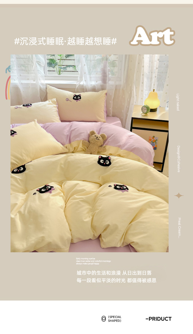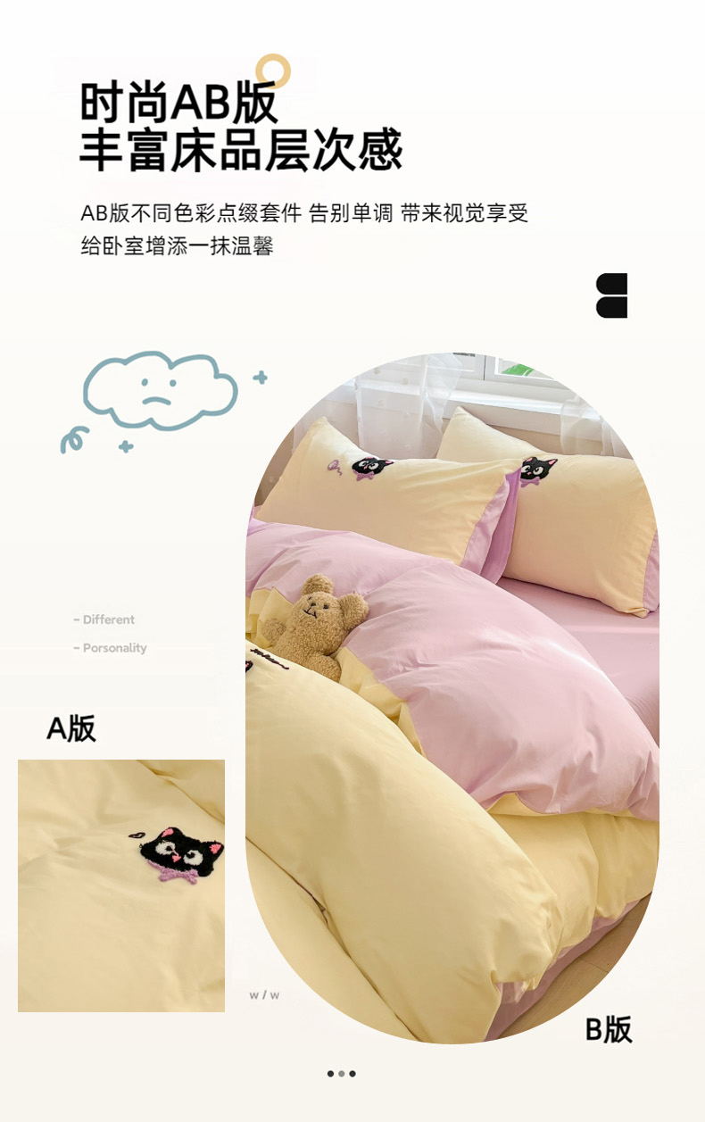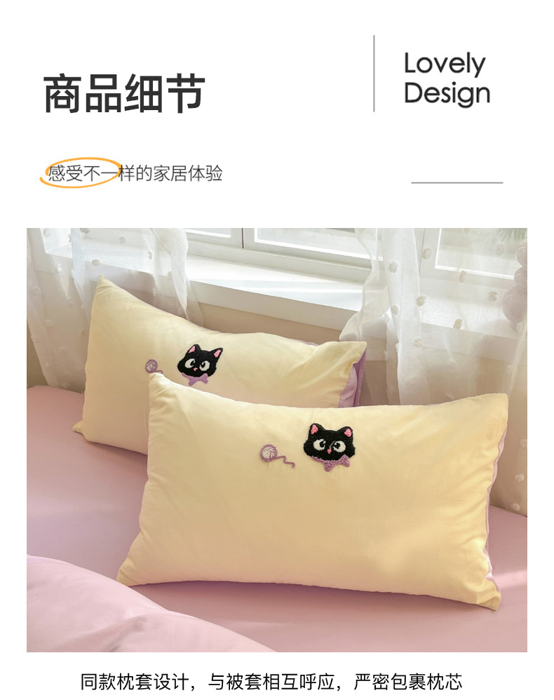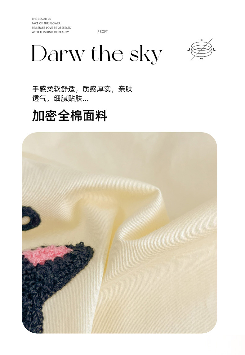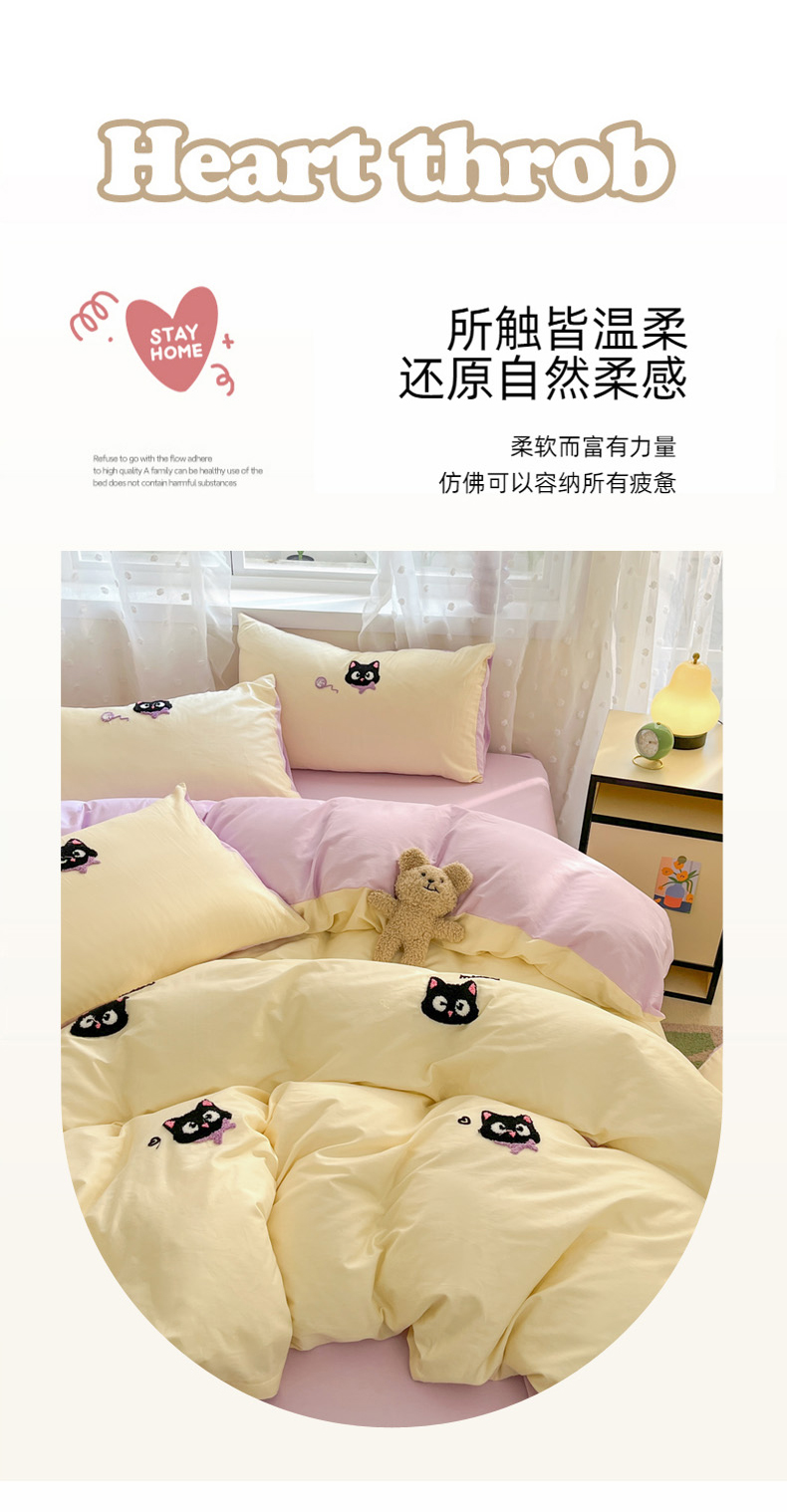 商品名称:丽涵家纺 2025新品全棉纯色毛巾绣可爱卡通四件套 散版-淘气猫