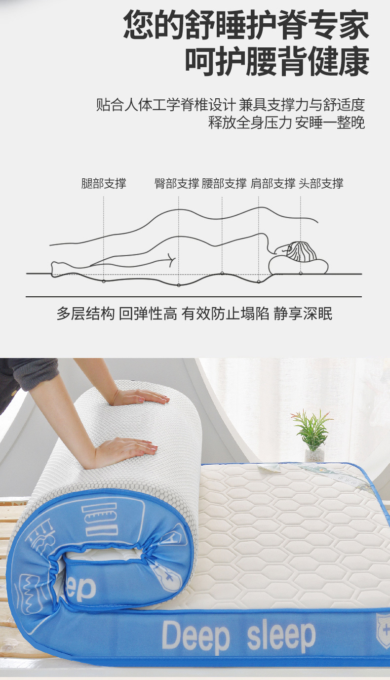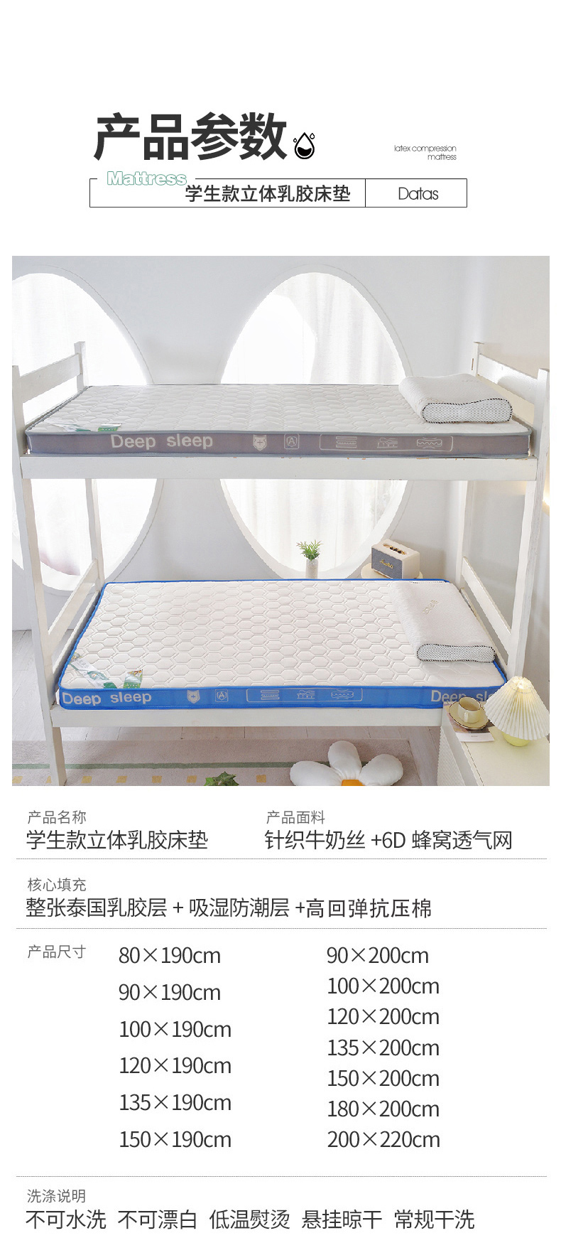当前位置: 91家纺网 > 商品网购 > 床垫/床褥 > 乳胶床垫 > 张先生2024针织牛奶丝透气网立体乳胶床垫学生床垫 深睡-蓝白