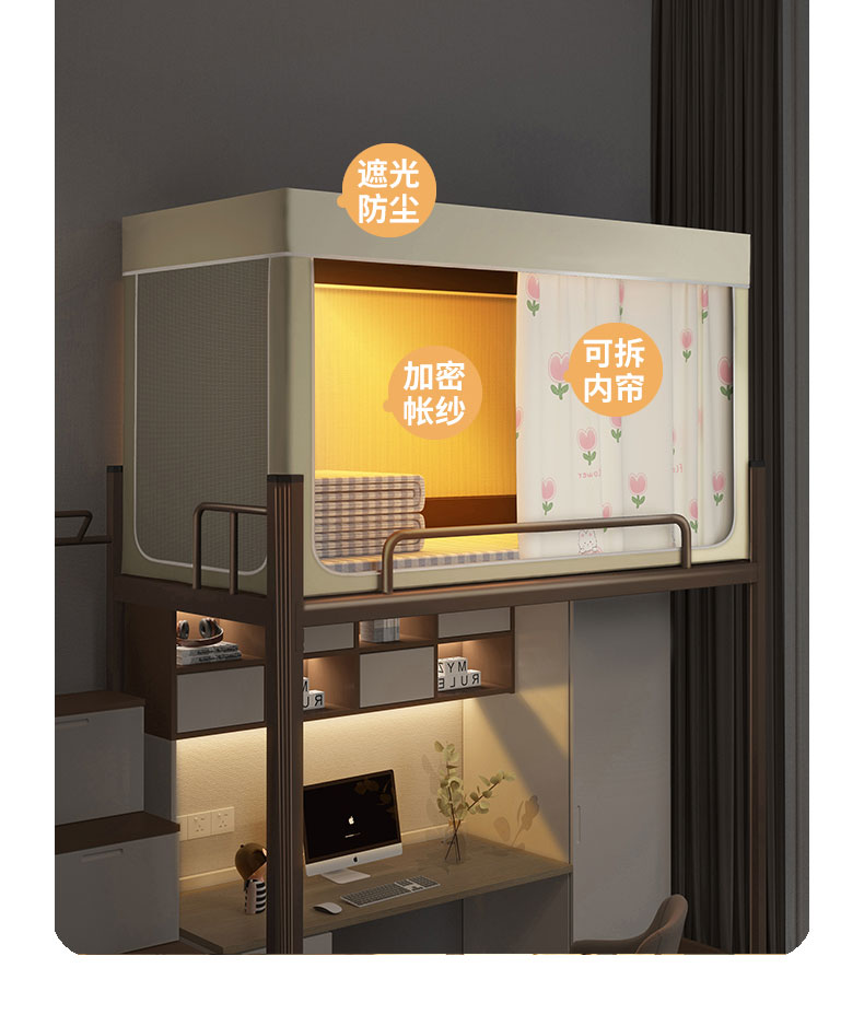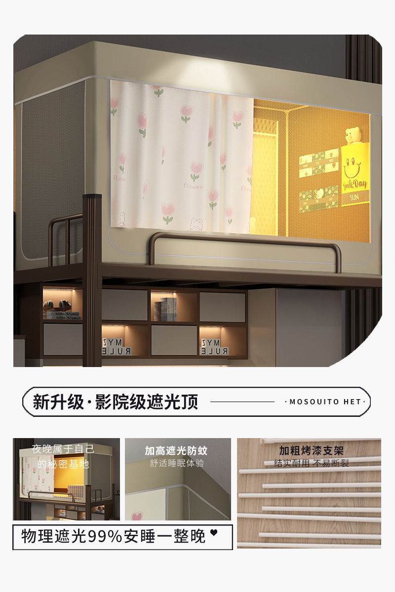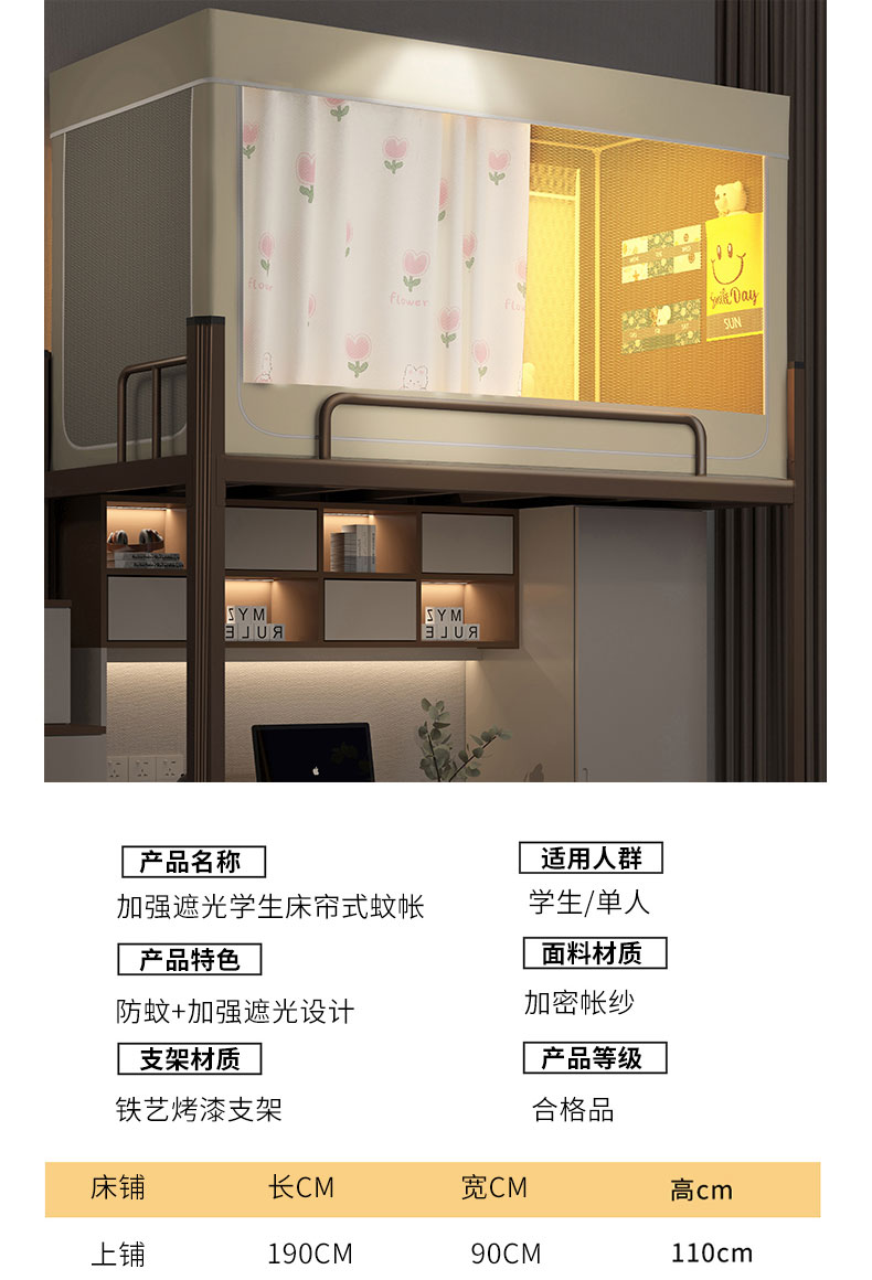 90上铺(带靠墙帘):90宽*190长*110高(自连接烤漆支架) | ¥103.00 |