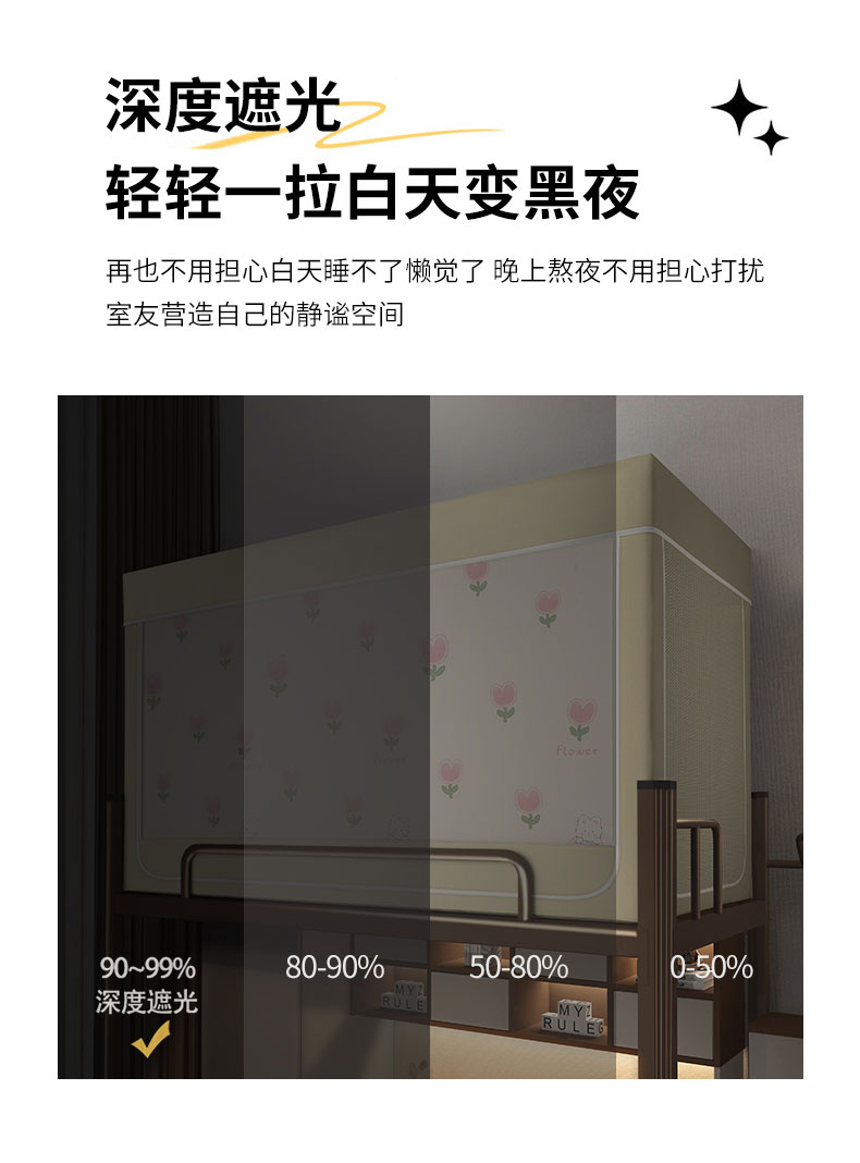 当前位置: 91家纺网 > 商品网购 > 床上用品 > 蚊帐 > 学生蚊帐 > 宅部落 2024新款99%全遮光涂层学生上下铺蚊帐 印花-郁金香小兔