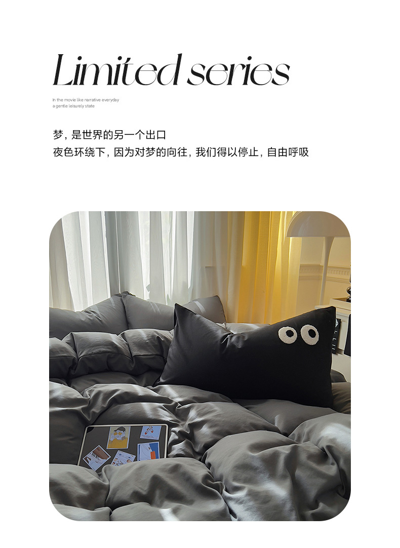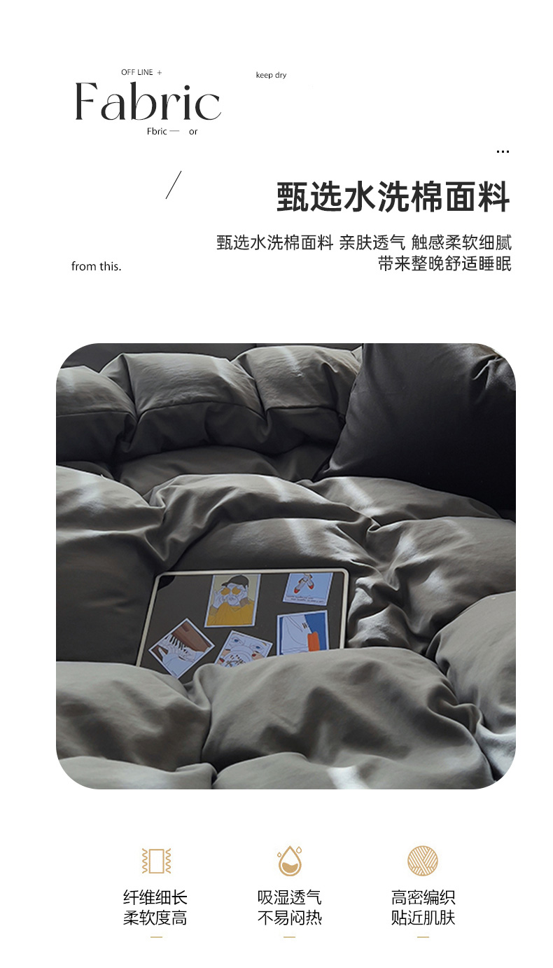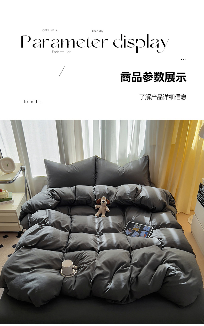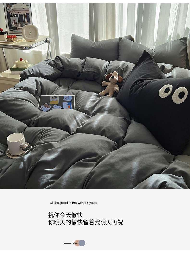 当前位置: 91家纺网 > 商品网购 > 床品套件 > 四件套 > 水洗棉四件套 > 易辰美 2024新款亲肤水洗棉四件套 深灰色