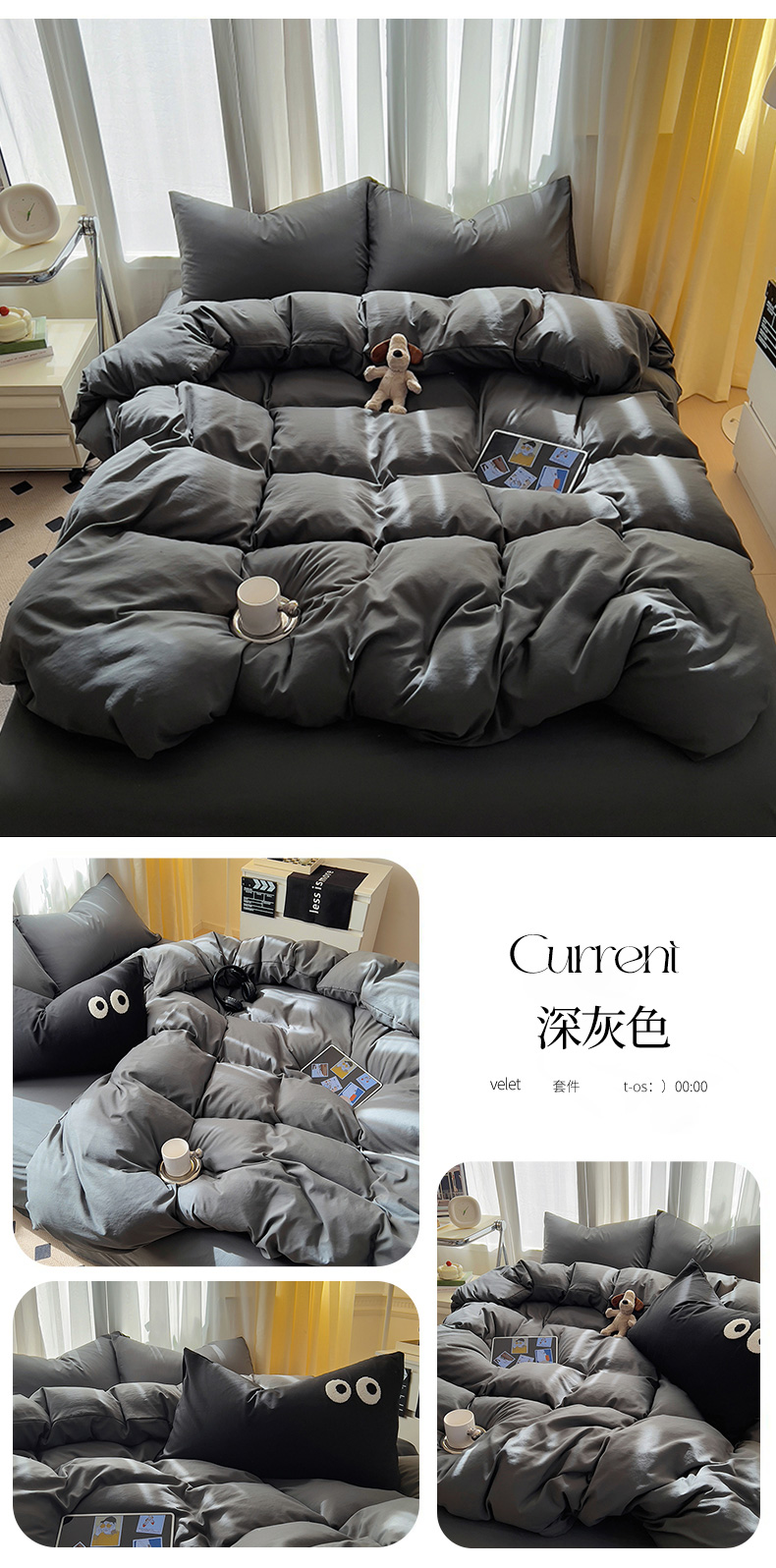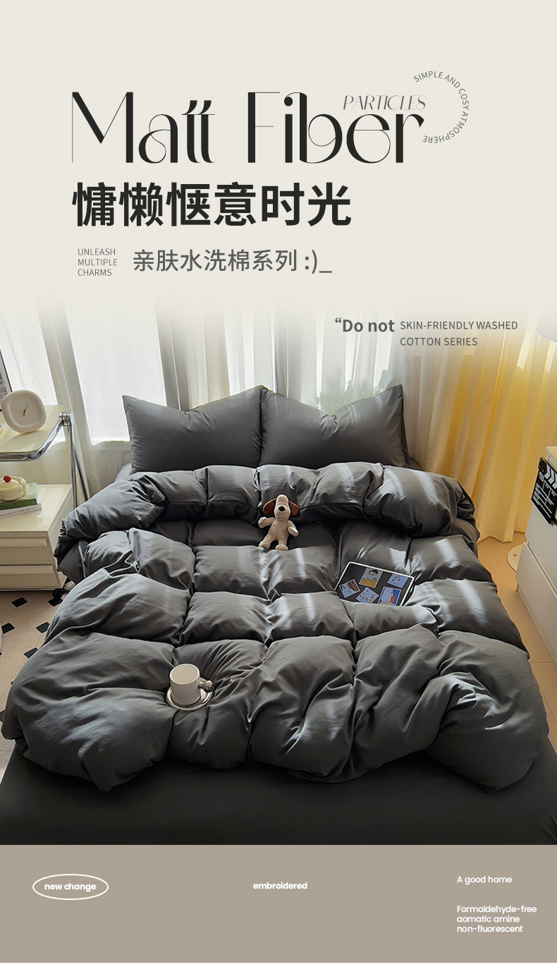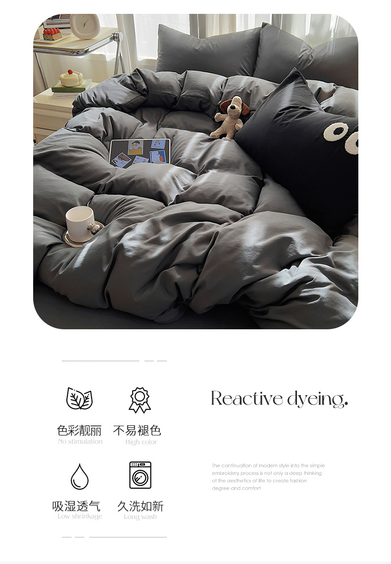 当前位置: 91家纺网 > 商品网购 > 床品套件 > 四件套 > 水洗棉四件套 > 易辰美 2024新款亲肤水洗棉四件套 深灰色