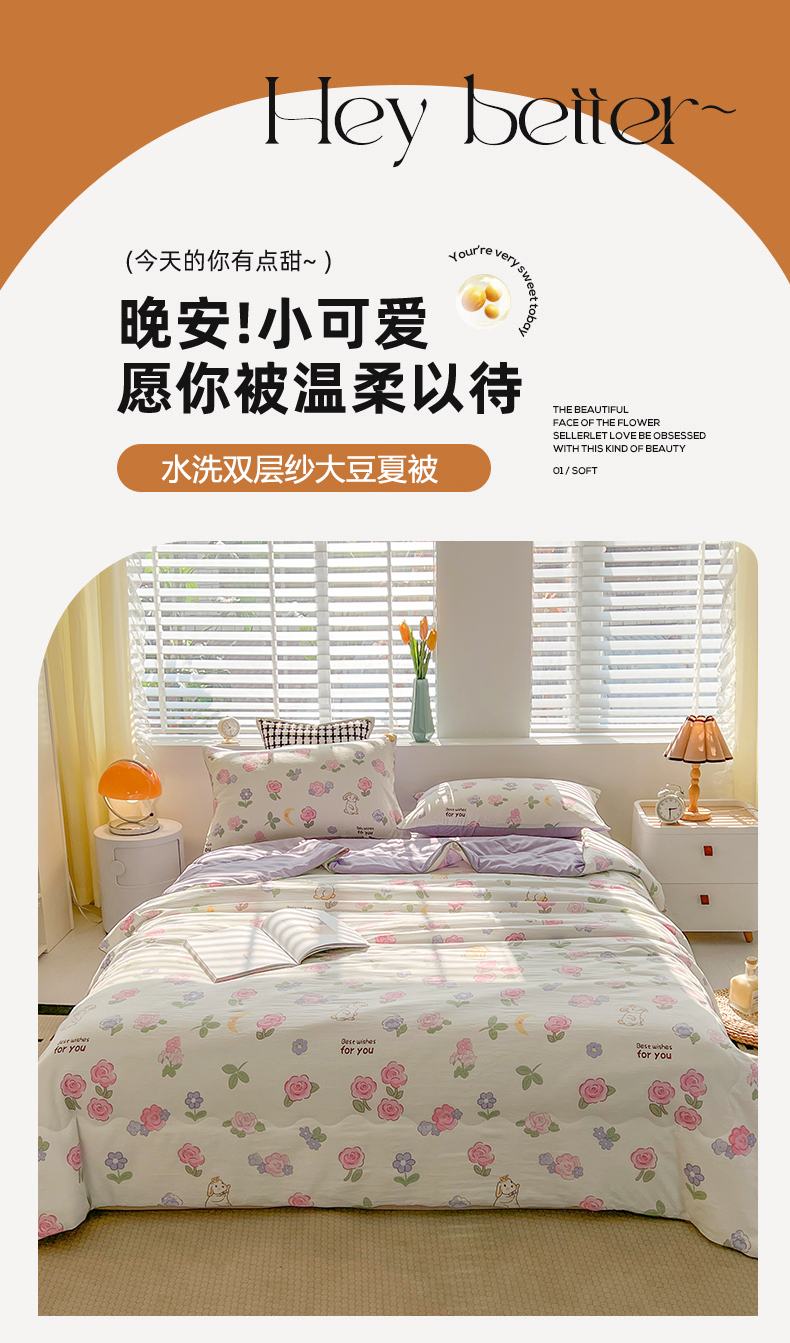 艺菲阁家纺 2024新款大豆蛋白水洗双层纱夏被 半眠日记