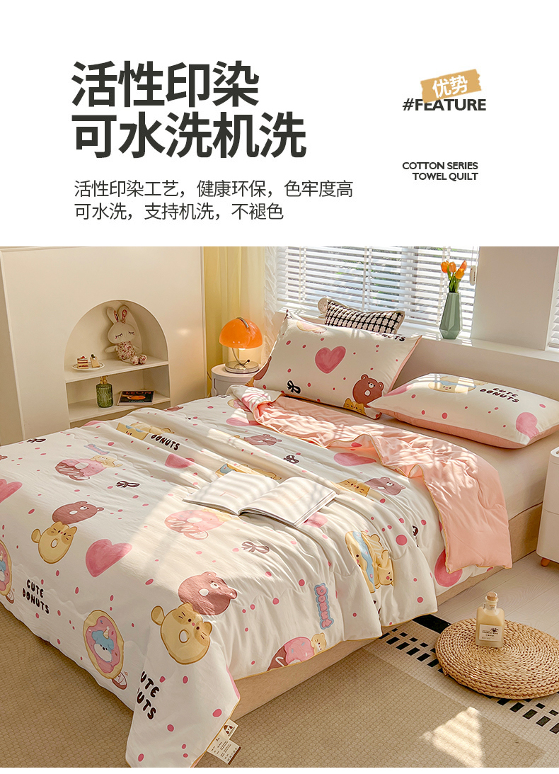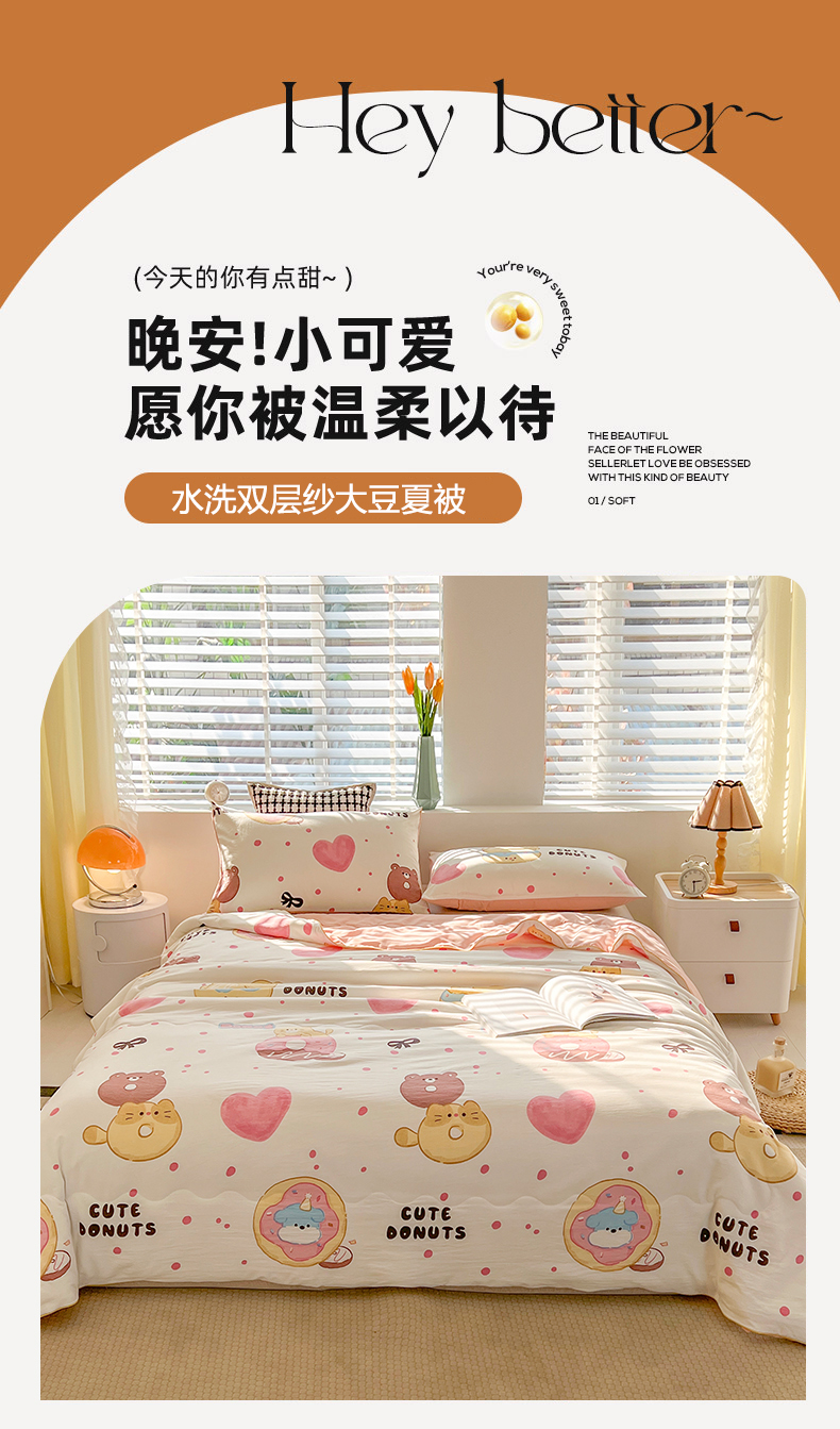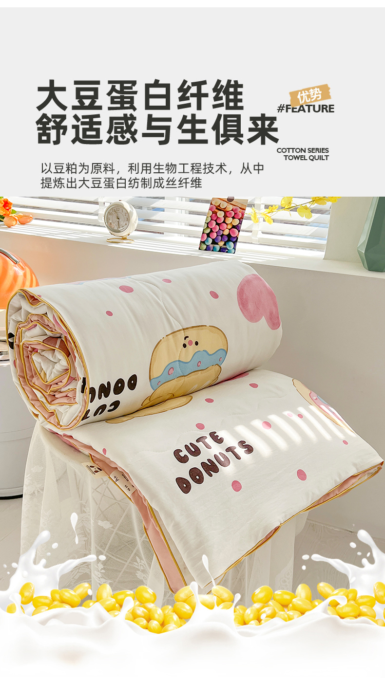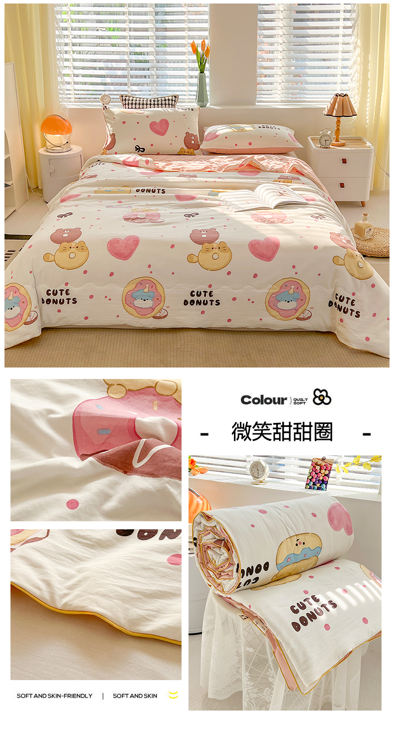 艺菲阁家纺 2024新款大豆蛋白水洗双层纱夏被 微笑甜甜圈