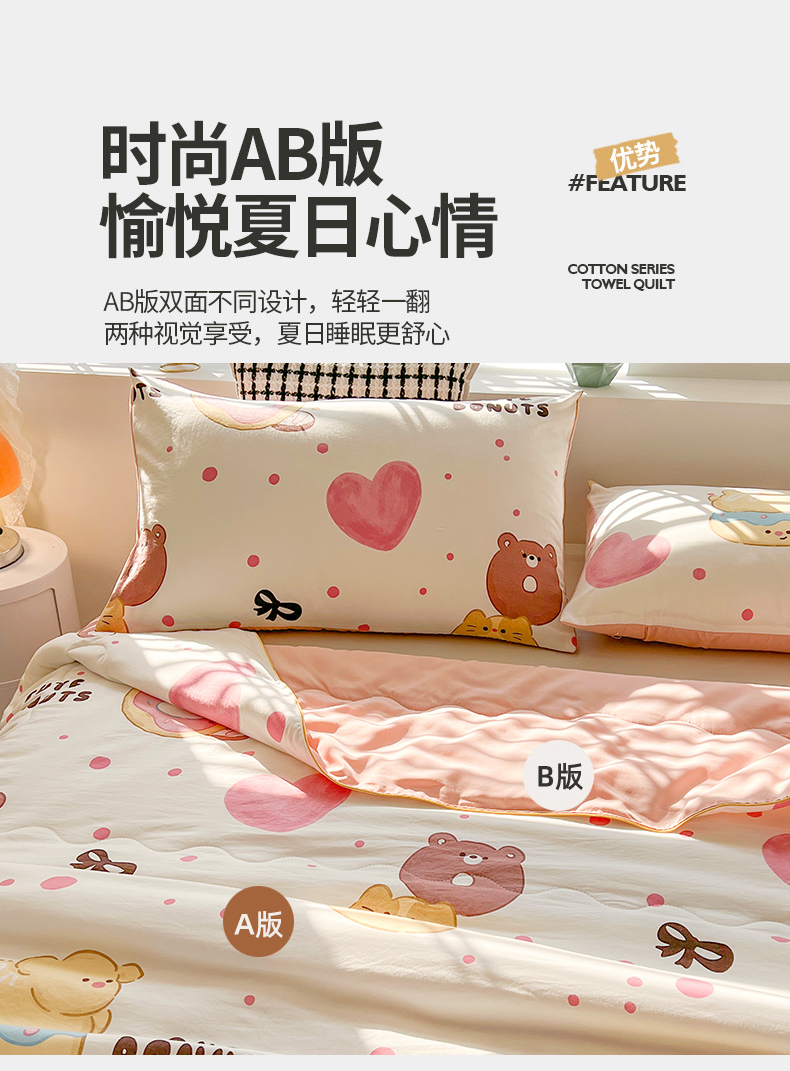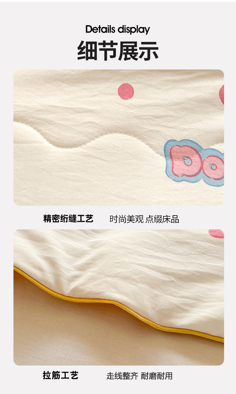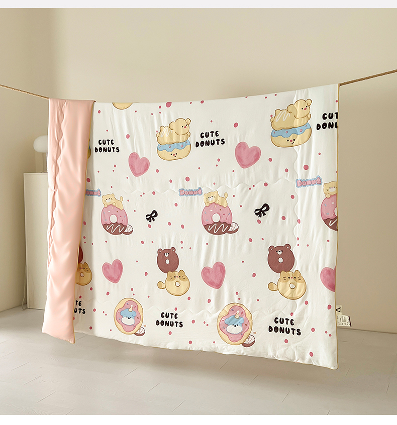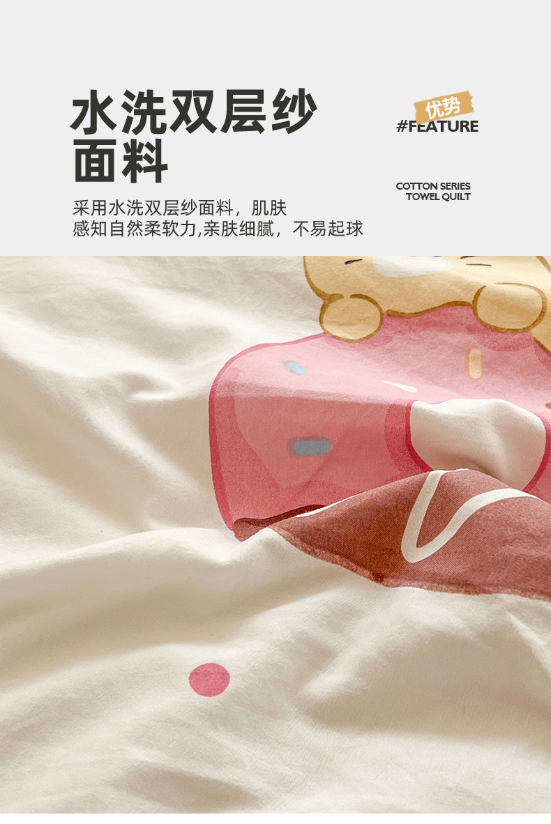 商品名称:艺菲阁家纺 2024新款大豆蛋白水洗双层纱夏被 微笑甜甜圈