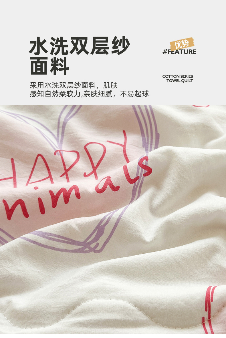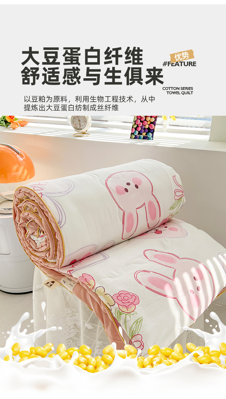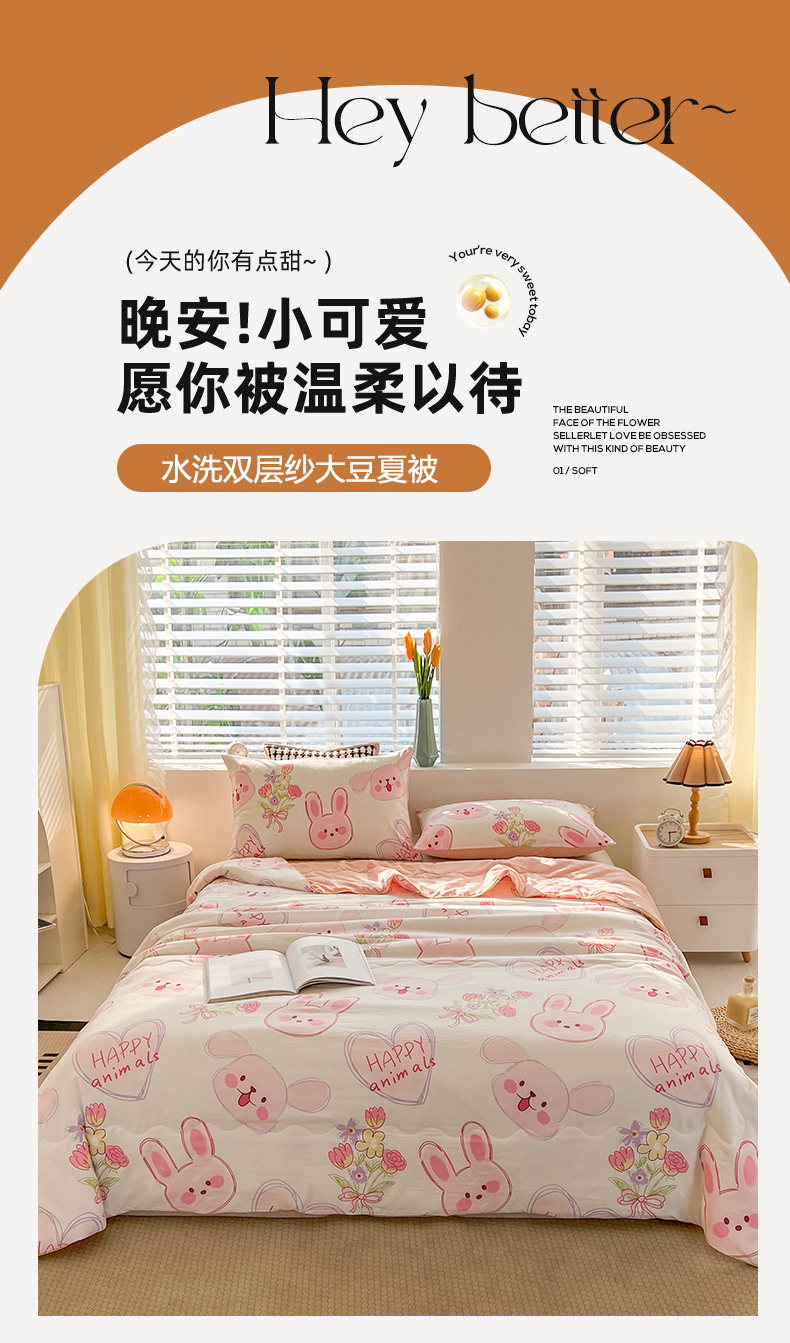 商品名称:艺菲阁家纺 2024新款大豆蛋白水洗双层纱夏被 椰椰兔